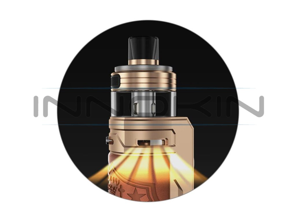Ve vrchní části e-cigarety přímo pod cartridgí najdete systém pro regulaci přísunu vzduchu. Tento systém se skládá z airflow otvoru a speciální páčky, která slouží pro uzavírání, nebo otevírání airflow systému. Snadno si tak vyladíte výslednou tuhost svým představám a žádanou tuhost si nastavíte pohodlně během pár vteřin.