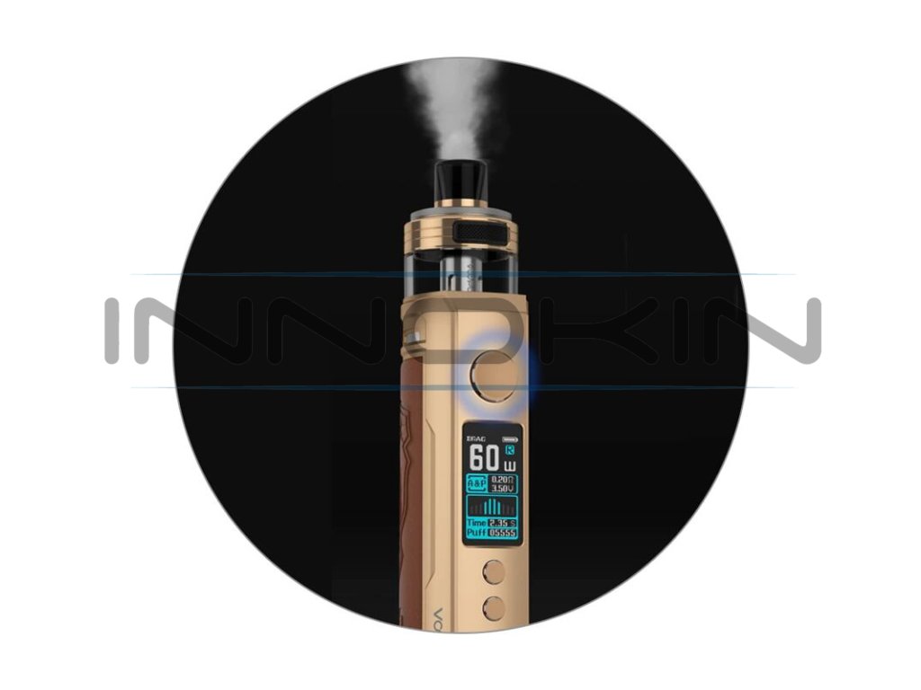 Uvnitř těla e-cigarety se nachází integrovaná baterie se solidní kapacitou 2500 mAh, která se postará nejen o dlouhou výdrž, ale také o efektivně rychlý náběh žhavení, který činí jen 0,001 vteřiny. Díky integrované baterii s vysokou kapacitou se můžete těšit také na maximální výstupní výkon až 60 W, čímž zaručeně uspokojí také náročnější příznivce velkého množství produkované páry. Baterii si budete moci kdykoliv pohodlně dobít díky portu USB-C na těle.