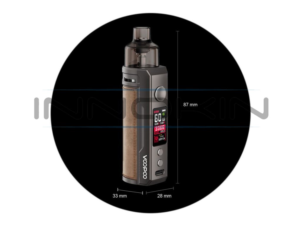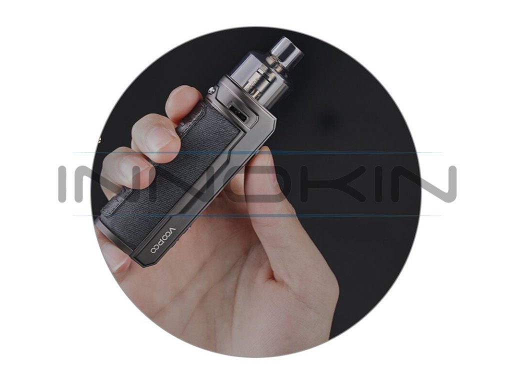 Celé tělo e-cigarety VooPoo Drag S Pod Kit nabídne exkluzivní dílenské zpracování. Konstrukce je vyrobena z kvalitní zinkové slitiny, kterou doplňuje plastová cartridge se silnými magnety ve vrchní části. Celkový vzhled potom dotváří zadní panel pokrytý kůží. Nabídne také ergonomickou konstrukci a kompaktní rozměry pro snadné přenášení a pohodlné používání.