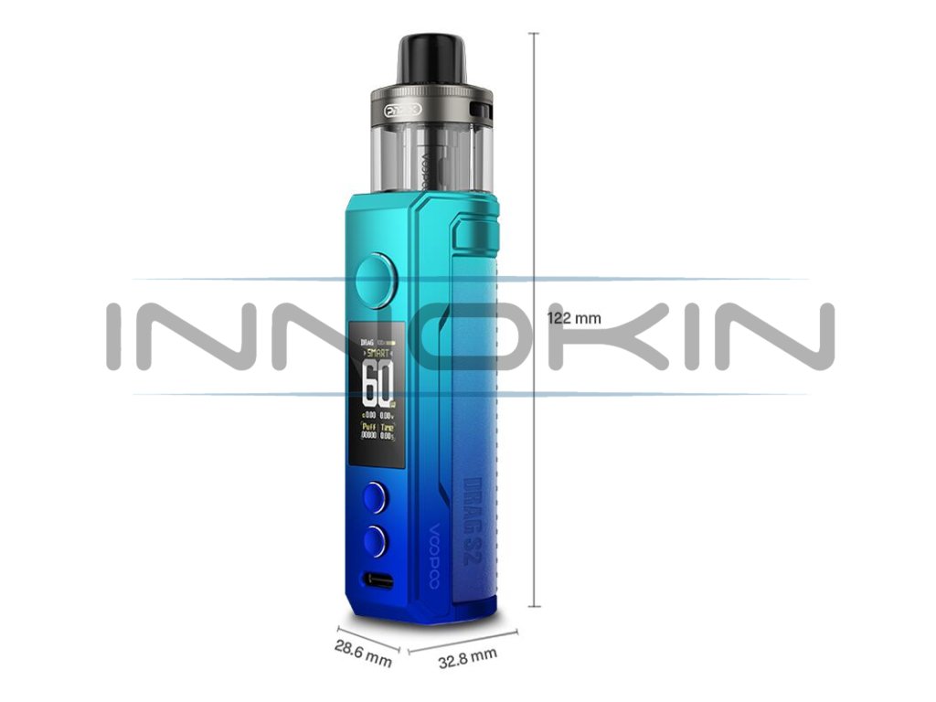 Druhá generace populárních modelů e-cigaret Voopoo Drag S a Drag X přináší celou řadu vylepšení v čele s upgradovaným čipsetem, přepracovaným rozhraním, podporou většího množství režimů, větším objemem a novou platformou PnP-X pro co nejlepší výsledky při vapování. Model VooPoo Drag S2 Pod Kit se pyšní krásně zpracovanou konstrukcí a zabudovanou integrovanou baterií s kapacitou 2500mAh v těle. Konstrukce je vyrobena z kombinace zinkové slitiny a kůže, samozřejmostí jsou potom praktické rozměry a zaoblené hrany v zadní části pro komfortní stisk v dlani. Integrovaná baterie si dokáže poradit s ohromujícím výkonem až 60 W. Baterii si navíc budete moci kdykoliv dobít prostřednictvím moderního rozhraní USB-C s parametry 5V / 2A.