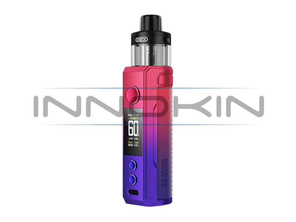 Druhá generace populárních modelů e-cigaret Voopoo Drag S a Drag X přináší celou řadu vylepšení v čele s upgradovaným čipsetem, přepracovaným rozhraním, podporou většího množství režimů, větším objemem a novou platformou PnP-X pro co nejlepší výsledky při vapování. Model VooPoo Drag S2 Pod Kit se pyšní krásně zpracovanou konstrukcí a zabudovanou integrovanou baterií s kapacitou 2500mAh v těle. Konstrukce je vyrobena z kombinace zinkové slitiny a kůže, samozřejmostí jsou potom praktické rozměry a zaoblené hrany v zadní části pro komfortní stisk v dlani. Integrovaná baterie si dokáže poradit s ohromujícím výkonem až 60 W. Baterii si navíc budete moci kdykoliv dobít prostřednictvím moderního rozhraní USB-C s parametry 5V / 2A.