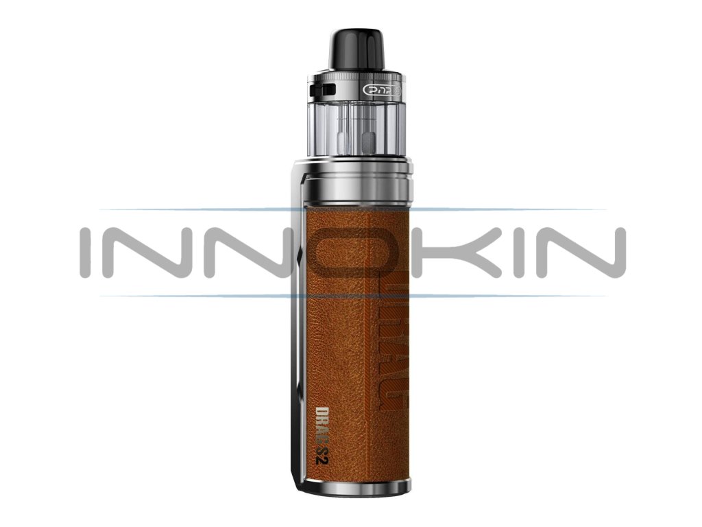 Druhá generace populárních modelů e-cigaret Voopoo Drag S a Drag X přináší celou řadu vylepšení v čele s upgradovaným čipsetem, přepracovaným rozhraním, podporou většího množství režimů, větším objemem a novou platformou PnP-X pro co nejlepší výsledky při vapování. Model VooPoo Drag S2 Pod Kit se pyšní krásně zpracovanou konstrukcí a zabudovanou integrovanou baterií s kapacitou 2500mAh v těle. Konstrukce je vyrobena z kombinace zinkové slitiny a kůže, samozřejmostí jsou potom praktické rozměry a zaoblené hrany v zadní části pro komfortní stisk v dlani. Integrovaná baterie si dokáže poradit s ohromujícím výkonem až 60 W. Baterii si navíc budete moci kdykoliv dobít prostřednictvím moderního rozhraní USB-C s parametry 5V / 2A.