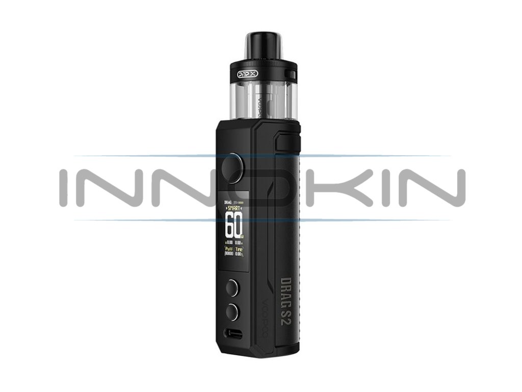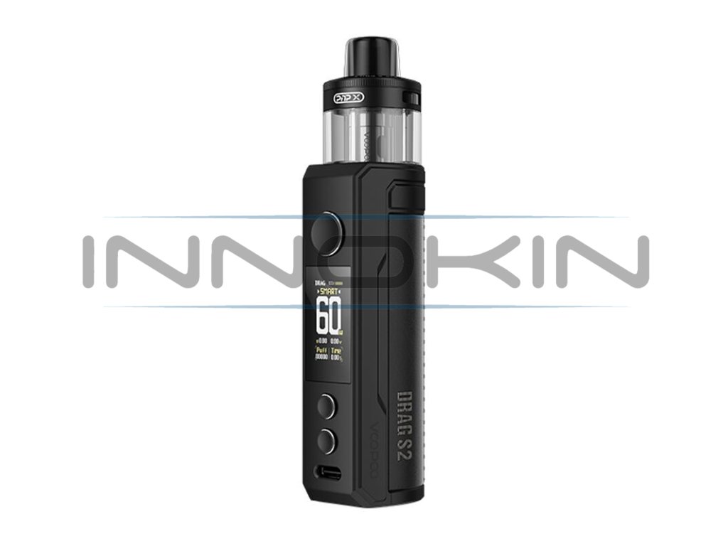 Druhá generace populárních modelů e-cigaret Voopoo Drag S a Drag X přináší celou řadu vylepšení v čele s upgradovaným čipsetem, přepracovaným rozhraním, podporou většího množství režimů, větším objemem a novou platformou PnP-X pro co nejlepší výsledky při vapování. Model VooPoo Drag S2 Pod Kit se pyšní krásně zpracovanou konstrukcí a zabudovanou integrovanou baterií s kapacitou 2500mAh v těle. Konstrukce je vyrobena z kombinace zinkové slitiny a kůže, samozřejmostí jsou potom praktické rozměry a zaoblené hrany v zadní části pro komfortní stisk v dlani. Integrovaná baterie si dokáže poradit s ohromujícím výkonem až 60 W. Baterii si navíc budete moci kdykoliv dobít prostřednictvím moderního rozhraní USB-C s parametry 5V / 2A.