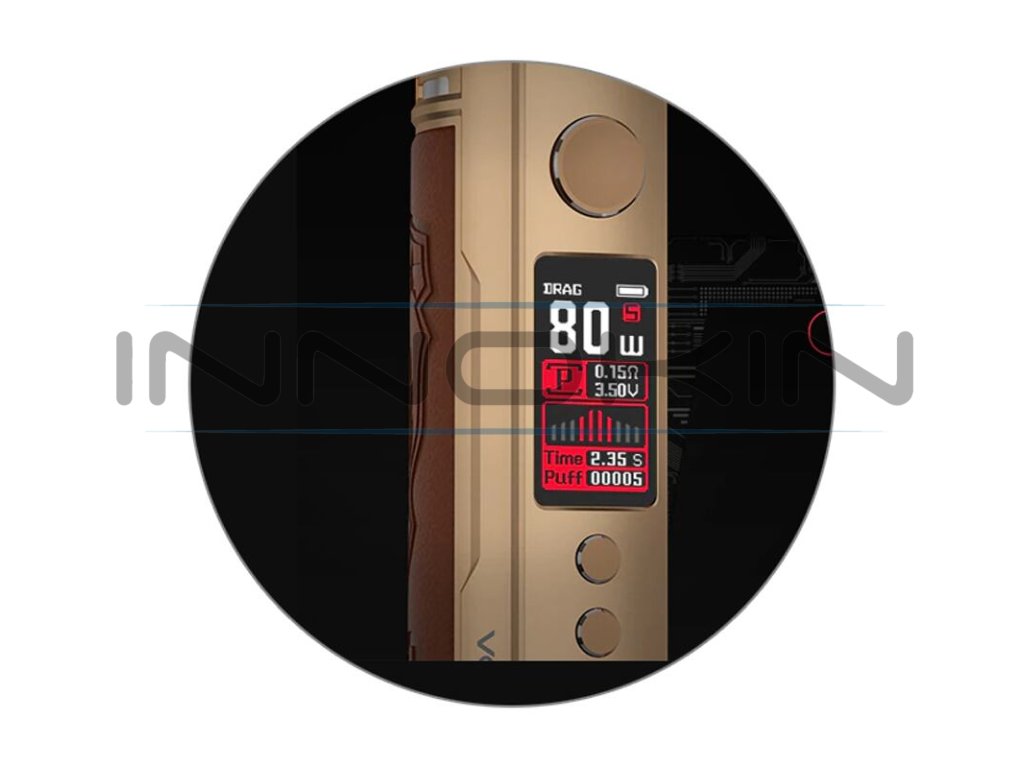 Přepracovaný design Nová verze populární e-cigarety VooPoo Drag X Pod Kit přichází s ještě ergonomičtějším zpracováním a s ještě stylovějším designem. Kovové tělo zařízení je doplněno o stylový kožený potah s motivem série v zadní části. Rozměry e-cigarety činí jen 127,5 x 32,5 x 28 mm. Díky zaoblené zadní části se perfektně drží v ruce a působí nesmírně robustním a bytelným dojmem, nechybí jí však také punc elegance. |