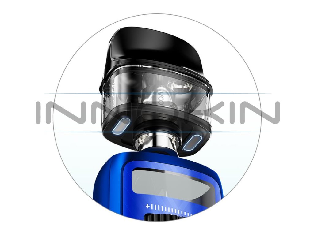 Ve vrchní části modelu Vinci 3 se nachází nová stejnojmenná cartridge. Tato cartridge nabídne obrovský objem zásobníku na e-liquid, hravě do ní doplníte až 4 ml e-liquidu. Díky této velké kapacitě dokáže uspokojit i náročnější příznivce přímého potahování do plic a poradí si s mnohahodinovým provozem bez potřeby dalšího plnění. V případě nutnosti doplnění pak vycvaknete náustek a během pár vteřin si doplníte e-liquid zpět pomocí otvoru s praktickou membránou proti vytečení.