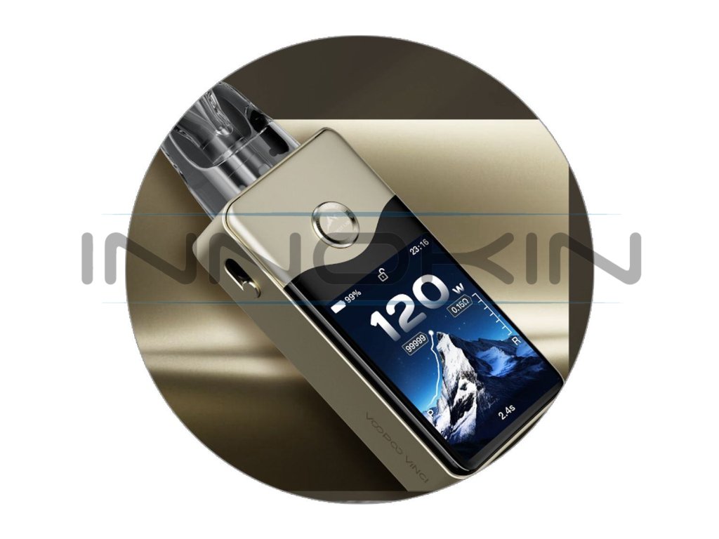 VooPoo Vinci E120 je luxusně zpracovaný pod mod s dominantním 2,4” TFT displejem v přední části a s luxusně zpracovanou hliníkovou konstrukcí těla. Díky pečlivě navrženým rozměrům perfektně padne do dlaně a díky bohaté nabídce barevných variací dokáže oslovit naprosto každého milovníka vapingu.