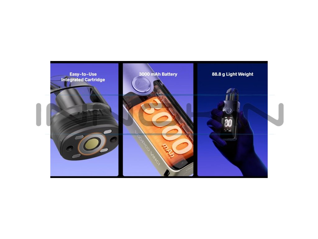 Sada VOOPOO VINCI E80 kombinuje vysoký výkon s uživatelsky přívětivým designem, díky čemuž je ideální jak pro úplné začátečníky, tak i zkušené vapery. Díky masivní vestavěné baterii o kapacitě 3000mAh poskytuje zařízení až 80W nastavitelného výkonu pro optimální zážitek z DTL na MTL vapování. Nová cartridge VINCI E o objemu 5ml je k dispozici s variantami odporu 0,3/0,6 a 0,8ohmu, což umožňuje bohatou chuť a flexibilitu páry. E80 je vyrobena z odolné hliníkové slitiny a vybavena TFT 1,47palcovým displejem, takže vyvažuje funkčnost s přenosností.