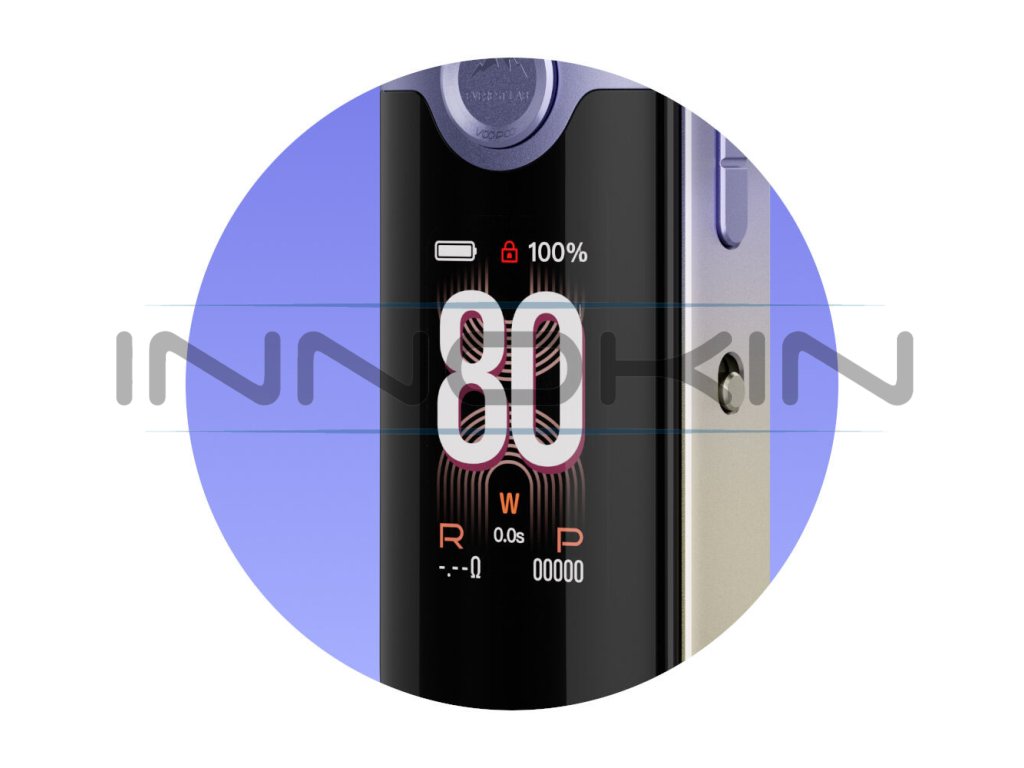 Displej je jednoznačnou dominantou a chloubou této elektronické cigarety, neboť disponuje úhlopříčkou 1,47 palce, jemným rozlišením a jasnými barvami. V aktuálním čase zobrazuje výkon, odpor, stav baterie, délku posledního potahu a celkový počet potahů. Všechny potřebné informace tak máte neustále na očích.