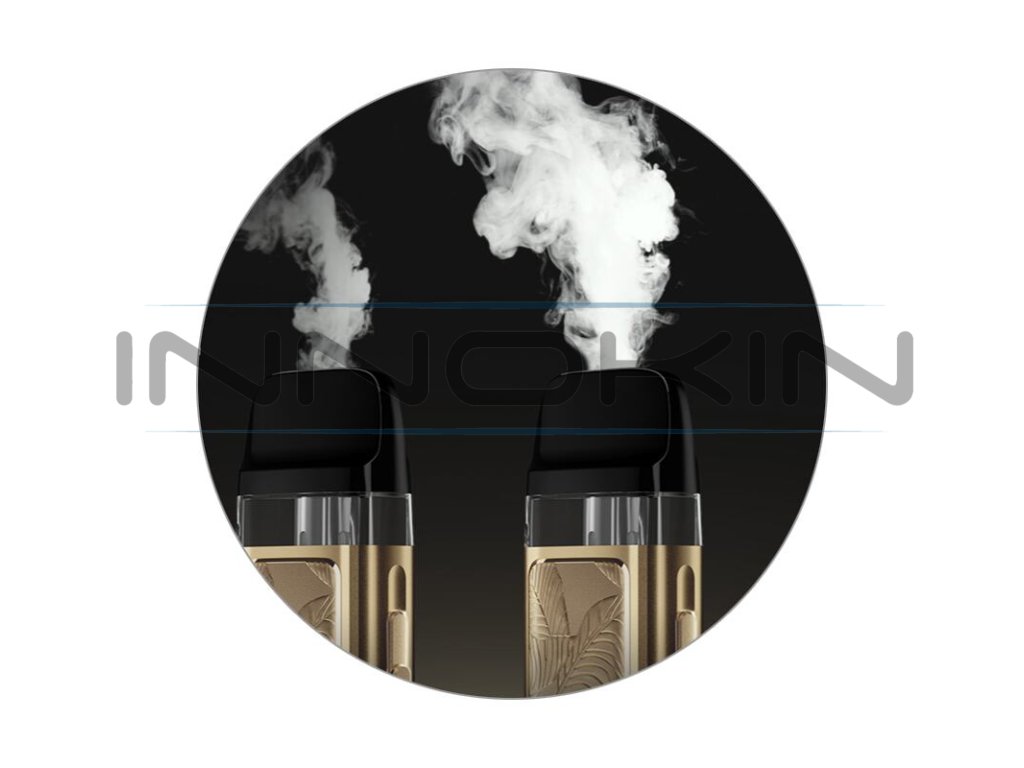Pro ovládání e-cigarety Vinci Pod Royal Edition nebudete potřebovat žádné tlačítko. Jednoduše si doplníte cartridge e-liquidem, vyčkáte pár minut a můžete začít potahovat. Žhavení se spustí zcela automaticky. Díky prvotřídní elektronice uvnitř těla se navíc můžete těšit na automatické nastavení výkonu, který se pohybuje v rozpětí 11 - 15 W na základě právě připojené cartridge. V boční části se potom nachází manuální ovládací tlačítko pro nastavení airflow. Souběžně se zařízením Vinci Pod Royal Edition se představují také dvě nové cartridge ze série Vinci Pod. Obě nabídnou objem 2 ml, nové vrchní plnění po sejmutí náustku, vylepšenou konstrukci pro omezení vzniku kondenzátu a vynikající podání chuti. V balení najdete cartridge s mesh pletivem v jádru a s odpory 0,8 ohm a 1,2 ohm pro různé tuhosti MTL potahu. VooPoo Vinci Pod Kit Royal Edition je luxusní e-cigareta pro klasické šlukování, která vás dokáže ohromit naprosto ve všem.