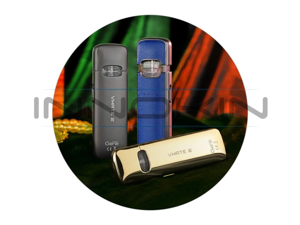 VooPoo VMATE E Pod Kit je luxusně zpracovaná e-cigareta pro klasické šlukování, která nádherně doplňuje celou sérii VMATE. Jedná se o zajímavý model zejména z hlediska estetiky, nabídne však také velice solidní parametry v čele s velkou kapacitou baterie, díky čemuž si její používání velice snadno oblíbíte. Samotné tělo je vyrobeno z kombinace zinkové slitiny a kůže. K dostání je ve třech barvách s tradiční šedou konstrukcí, nebo ve třech barvách pro náročnější, které nabídnou kovovou konstrukci s pozlaceným povrchem pro co nejstylovější vzhled. Rozměry těla činí 99,5 x 30,5 x 17 mm, díky svému ergonomickému zpracování a kompaktním rozměrům padne e-cigareta perfektně do ruky a pohodlně se užívá. Hlavní výsadou je potom speciální krytka náustku ve vrchní části, která zabraňuje vniknutí nečistot při cestování, nebo při každodenním používání, do samotného náustku. E-cigaretu tak můžete neustále udržovat v čistotě a užívat si pohodový vaping naprosto kdykoliv.