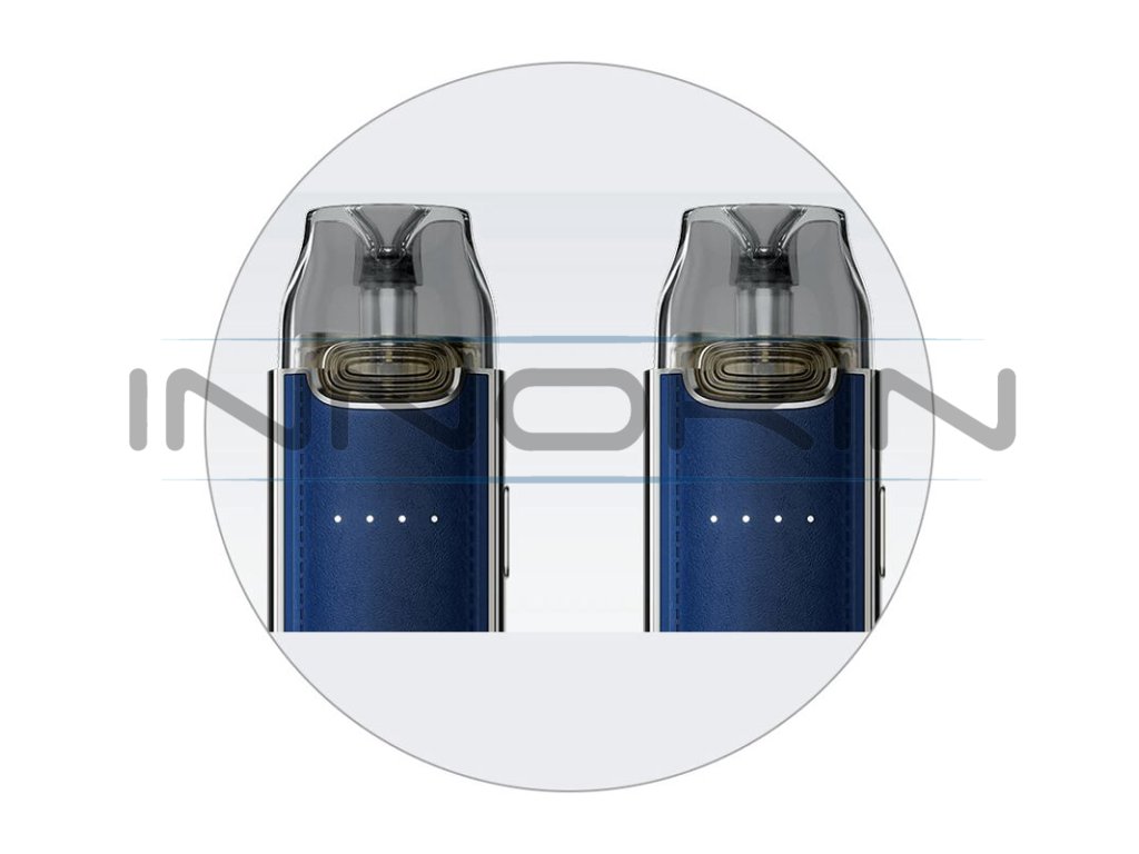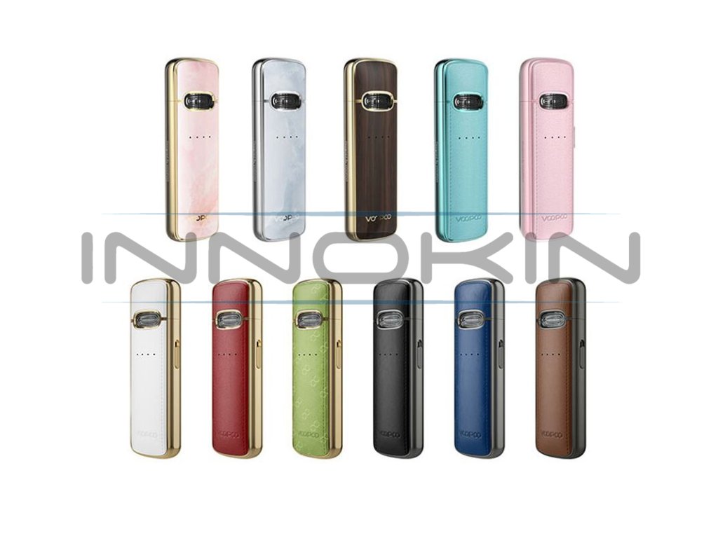 VooPoo VMATE E Pod Kit je nádherně zpracovaná a stylová e-cigareta, která přichází na scénu hned v šesti barvách. Tělo je vyrobeno z kombinace zinkové slitiny a kůže, na výběr budete mít ze tří konvenčních barev s šedou konstrukcí, nebo tři moderní a luxusní barvy s pozlacenou konstrukcí. Rozměry e-cigarety činí krásných 99,5 x 30,5 x 17 mm, díky čemuž se bude příjemně držet v ruce při každodenním používání.