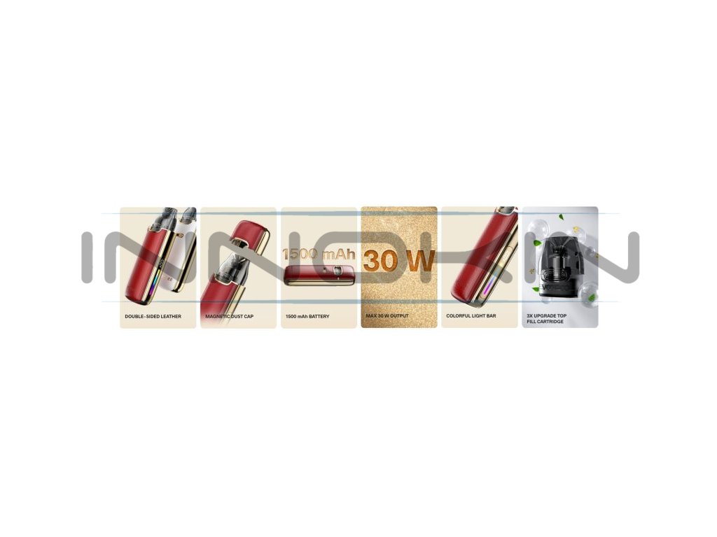 Není určeno pro náplně obsahující nikotin! VOOPOO VMATE E2 je vylepšená verze původního modelu, která Vás na první pohled zaujme svým luxusně zpracovaným designem. Oproti první verzi E2 disponuje monočlánkem o kapacitě 1500mAh s maximálním výstupním výkonem až 30W, rychlým nabíjecím USB-C portem pro 2A a bočním barevným indikátorem stavu nabití baterie. Součástí balení je cartridge VMATE TOP FILL o objemu 3ml a odporu 0,7ohm a 0,4ohm.