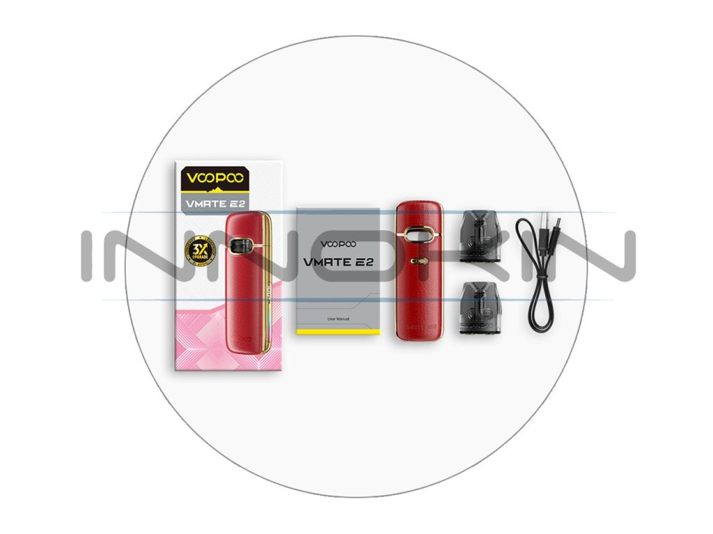 Ikonický design elektronické cigarety VooPoo Vmate E přenáší výrobce VooPoo také do druhé generace s názvem Vmate E2, nově však nabídne řadu vylepšení pro ještě větší komfort při vapování a pro ultimátní požitek z potahu. Krásný panel z ekokůže se nyní nachází na obou panelech zařízení, design je celkově ještě odladěnější, zaoblenější a příjemněji se používá. Díky novým cartridgím Vmate V3 Top Fill s delší životností, výraznějším podáním chuti a skvělou kapacitou si můžete užívat plnohodnotný vaping bez kompromisů. A s větší kapacitou integrované baterie, která se dostala až na 1500mAh nabídne možnost intenzivnějšího potahování s mnohem delší dobou provozu na jedno nabití. VooPoo Vmate E2 Pod Kit je opravdová stylovka.