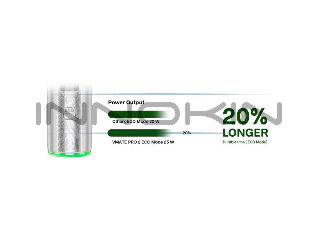 Druhá generace pokročilejšího pod systému VooPoo Vmate Pro s označením Pro 2 přináší hned dva režimy výstupu pro ještě širší možnosti využití. Jedná se o pod systém s obrovskou kapacitou integrované baterie 1500 mAh, přičemž její kapacitu můžete jednoduše spořit díky inovativnímu a zbrusu novému režimu ECO při zachování stejného požitku z vapování, jako kdykoliv předtím. U druhé generace došlo také k upgradu po designové stránce pro více svěží, trendy a modernější vzhled celé e-cigarety. Seznamte se s modelem VooPoo Vmate Pro 2, ideálním parťákem pro MTL i RDL vapování a pro každodenní využití.