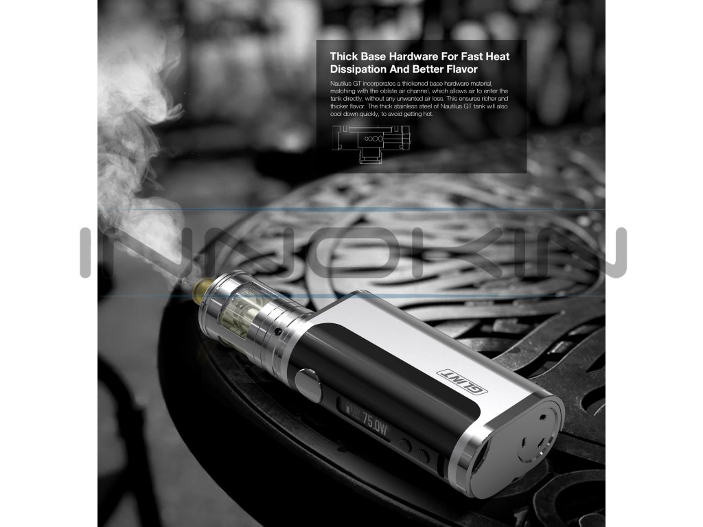 Samotný Grip je uživatelsky velmi přívětivý a skvěle padne do ruky. Nabízí naprosto dostatečný výkon až 75W, což v kombinaci s dobře zvolenou žhavící hlavou zaručuje tvorbu hustého dýmu a uspokojí tak tedy i nejnáročnější uživatele elektronických cigaret. Grip Nautilus GT pohání jedna baterie typu 18650 (není součástí setu), která by měla, chcete-li dosahovat stabilně výše uvedeného výkonu alespoň 20A. Grip je osazen přehledným, téměř jednopalcovým OLED displejem, který zobrazuje vše potřebné, ať již jde o aktuálně nastavený výstupní výkon, použitý odpor atomizéru, napětí článku, nebo celkovou kapacitu baterie. Ovládání je velmi snadné pomocí dvou tlačítek pod displejem a jednoho velkého nad ním, který zároveň slouží k aktivaci celého zařízení při potahování.