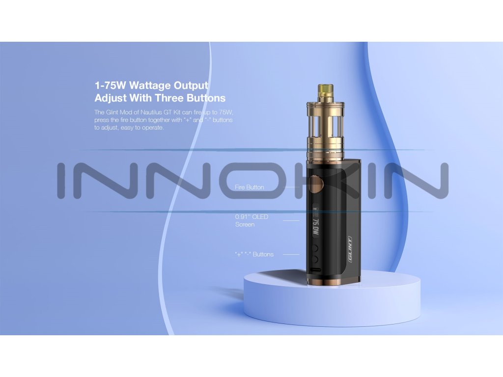 Samotný Grip je uživatelsky velmi přívětivý a skvěle padne do ruky. Nabízí naprosto dostatečný výkon až 75W, což v kombinaci s dobře zvolenou žhavící hlavou zaručuje tvorbu hustého dýmu a uspokojí tak tedy i nejnáročnější uživatele elektronických cigaret. Grip Nautilus GT pohání jedna baterie typu 18650 (není součástí setu), která by měla, chcete-li dosahovat stabilně výše uvedeného výkonu alespoň 20A. Grip je osazen přehledným, téměř jednopalcovým OLED displejem, který zobrazuje vše potřebné, ať již jde o aktuálně nastavený výstupní výkon, použitý odpor atomizéru, napětí článku, nebo celkovou kapacitu baterie. Ovládání je velmi snadné pomocí dvou tlačítek pod displejem a jednoho velkého nad ním, který zároveň slouží k aktivaci celého zařízení při potahování.