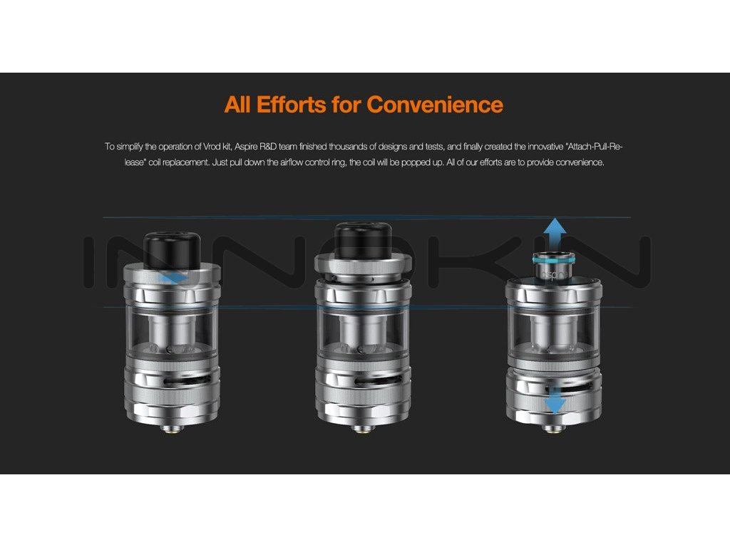 Aspire je jeden z velkých výrobců, který od roku 2013 posouvá dopředu zařízení, ale i způsob vapování. Aspire první představil takzvané BVC hlavy. Aspire se zaměřoval na tyl kouření pusa-plíce, ale jako první přišel s nízkoodporovým tankem. Aspire dále pokračuje na pevných základech. Aspire má pro začátečníky skvělé sady, pokročilí si užijí novou řadu nízkoodporových tanků