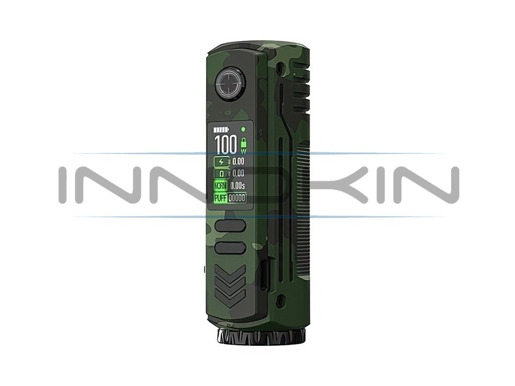 Kompaktní jednobateriový mod 5-100W s čipsetem XT Ultra 1.3, barevným OLED displejem a robustní konstrukcí z hliníkové slitiny. Podporuje 18650/21700 baterie, USB-C nabíjení 2A. Limitovaná edice. Barva: Military Camo