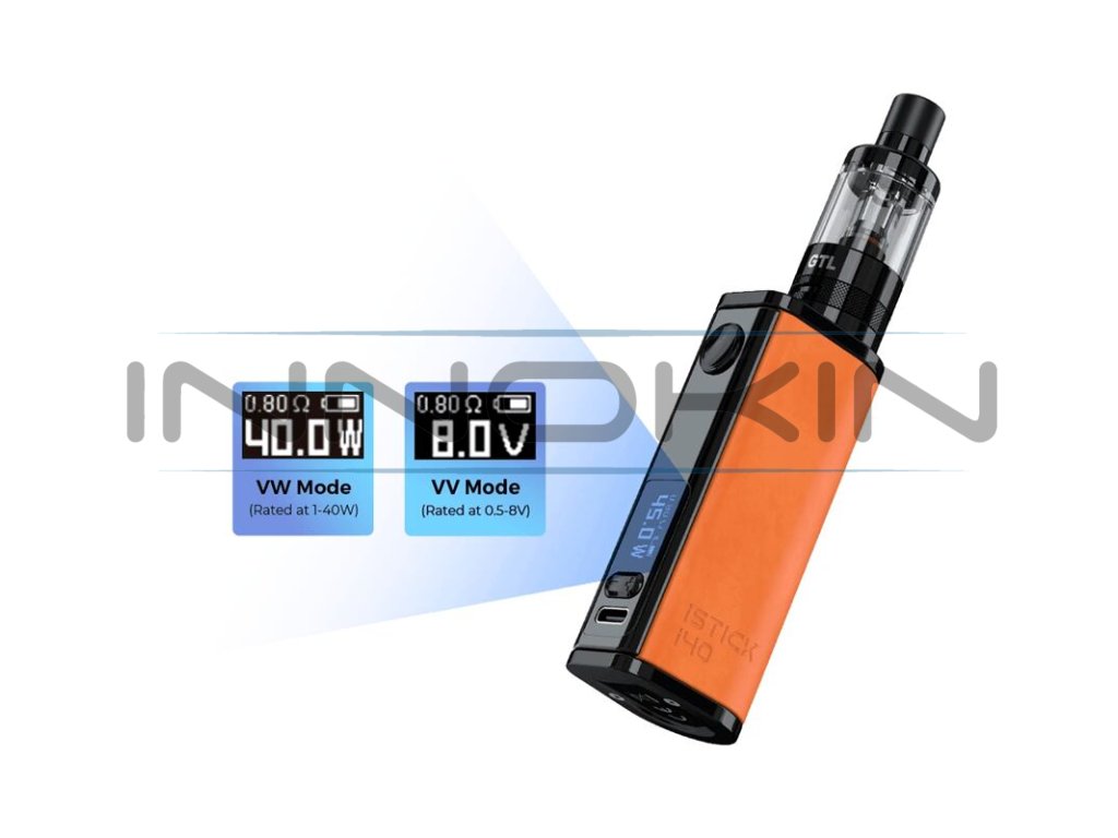 Na stejném panelu potom najdete také ovládací prvky modu, včetně samotného OLED displeje. Mod iStick i40 pracuje se dvěma výstupními režimy, prvním z nich je standardní režim výkonu, druhým režimem je potom režim variabilního výstupního napětí. Všechny potřebné hodnoty nastavíte na zařízení během pár vteřin. Clearomizér GTL D20 je potom k modu našroubován pomocí závitu 510. Jedná se o clearomizér se solidním objemem 3 ml, funkcí vrchního plnění a spodním systémem airflow. Clearomizér je kompatibilní se žhavícími tělísky Eleaf GTL, do série těchto tělísek přináší nové upgradované hlavy v černém provedení s mesh pletivem v jádru. V základním balení na vás čekají hned dvě tělíska ze série GTL Black Edition s odpory 0,8 ohm a 1,2 ohm pro optimální požitek z MTL potahu. Kompletní souprava Eleaf iStick i40 Kit je ideální volbou pro začátečníky a nenáročné uživatele, kteří hledají svůj první box mod bez komplikovaného uživatelského nastavení.