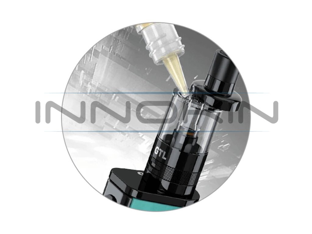 Clearomizér GTL D20 Tank disponuje solidním objemem tanku 3ml. S touto kapacitou si hravě poradí také s intenzivnějším vapováním po dlouhou dobu. V případě nutnosti doplnění vás potom potěší přítomnost výsuvného vrchního plnění. Nic není potřeba šroubovat, jednoduše vysunete uzávěr do strany a doplníte si potřebné množství e-liquidu zpět do tanku. Proces zabere pár vteřin.