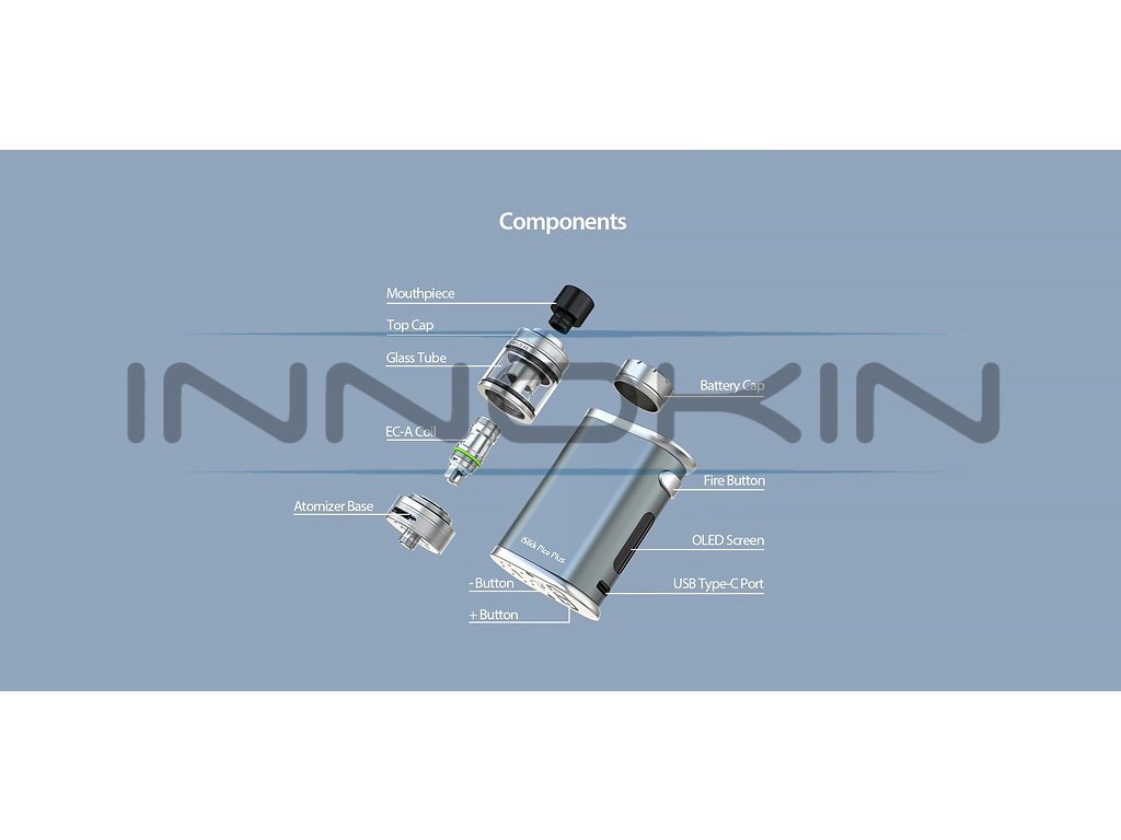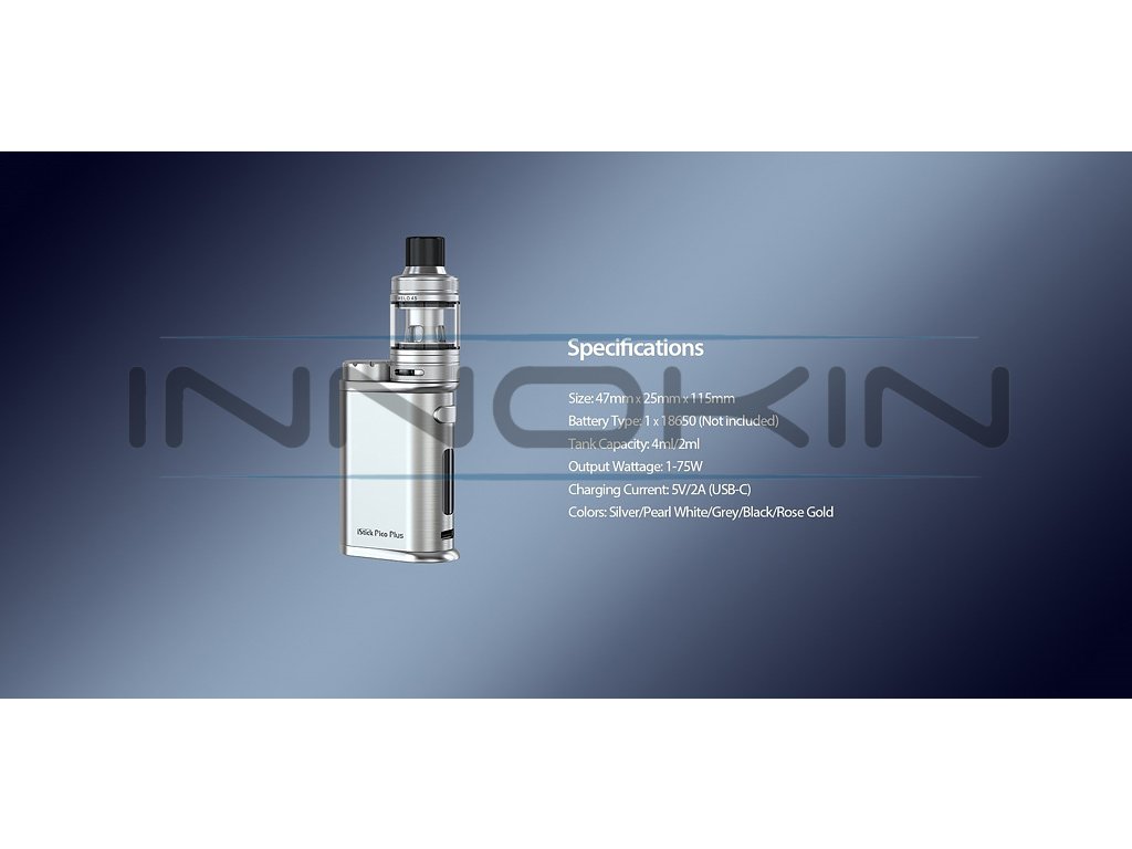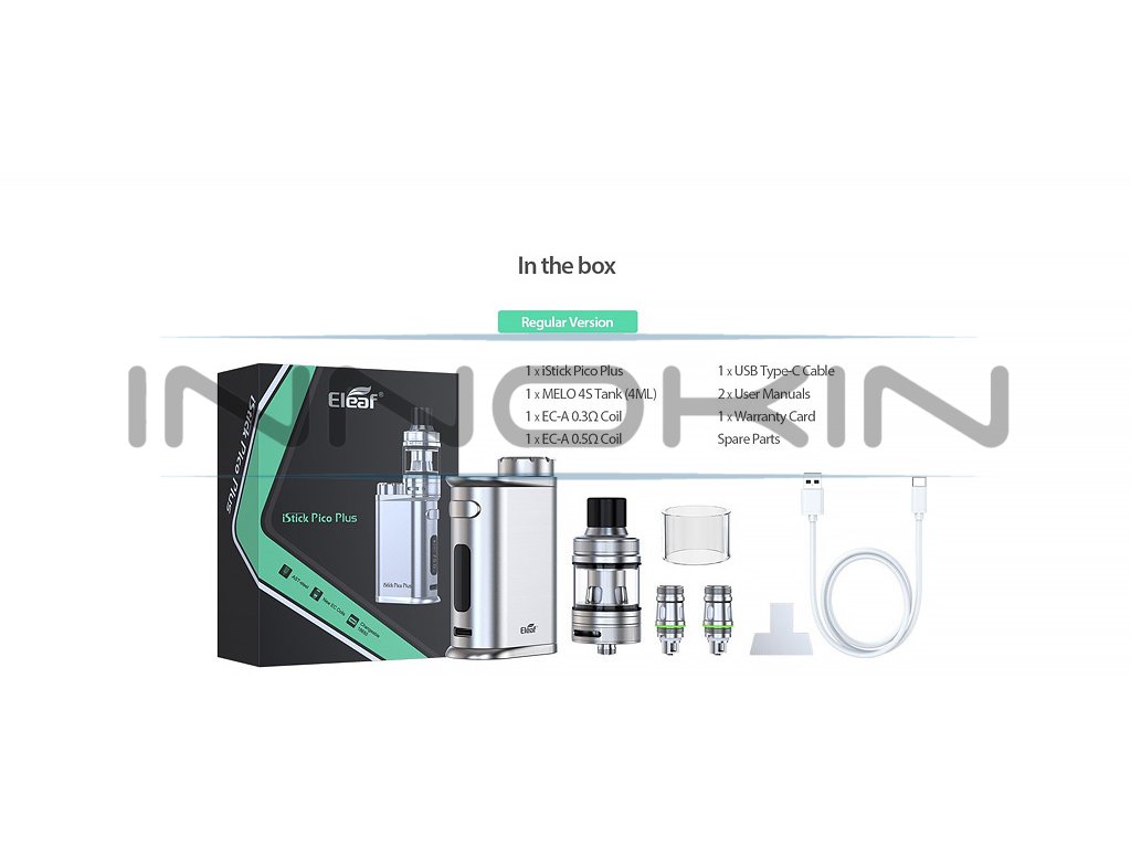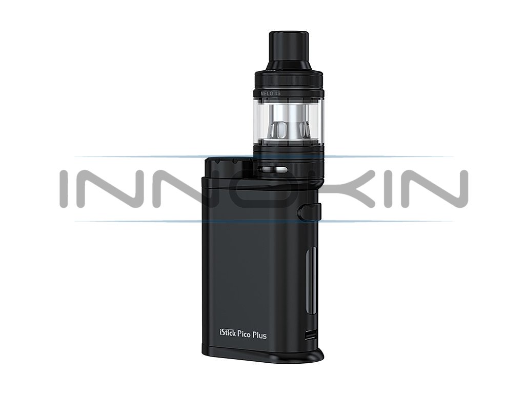 Nástupce oblíbeného iStick Pico, tentokrát s přívlastkem Plus. Vysoký nastavitelný výkon až 75W, na baterie typu 18650, rychlé USB-C nabíjení, OLED displej, Grip je osazen inovativním Clearomizérem Eleaf mělo 4S s kapacitou 4ml, horním plněním, plynulou regulaci Airflow. Zcela nové žhavící hlavy Eleaf EC-A z nerezové oceli AST, které jsou kompatibilní s řadou EC. 2x žhavící hlava EC-A v SETU, závit 510. Baterie nejsou součástí balení. Barevné provedení Black.