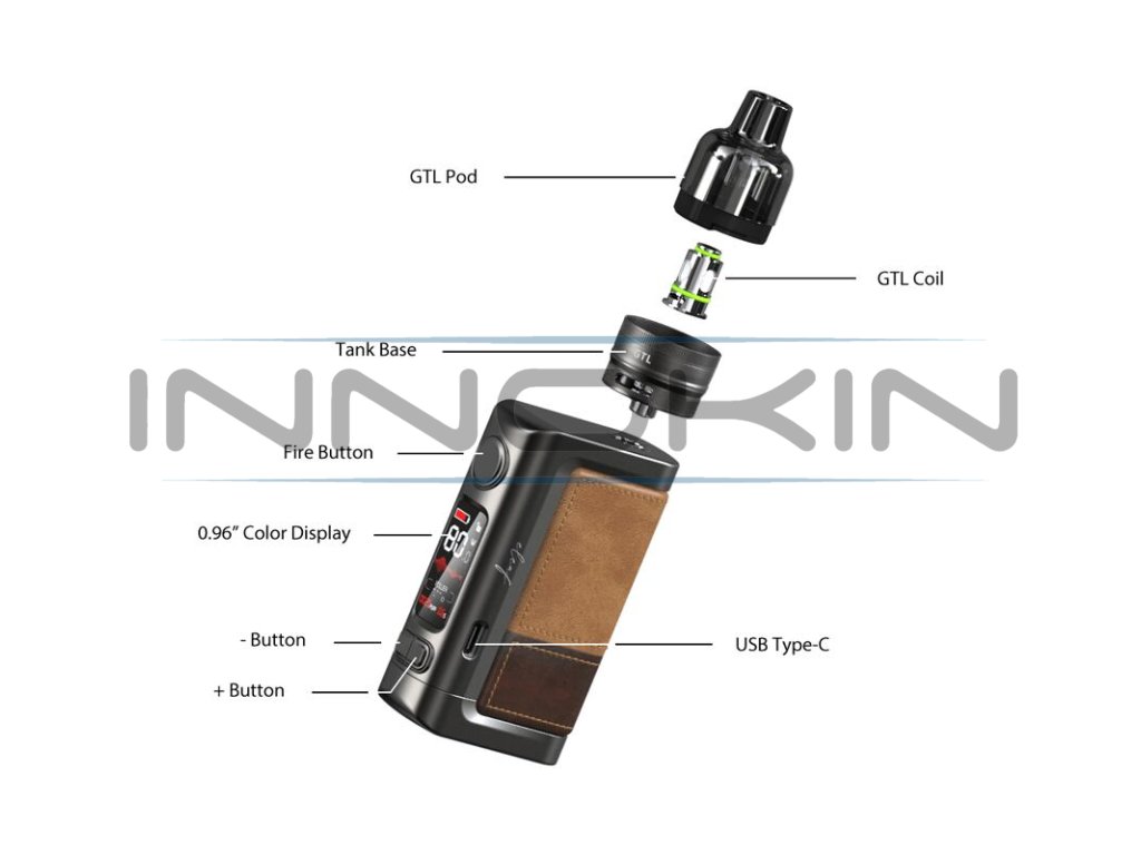 Mod nabídne také moderní a stylový design. Kovovou konstrukci zařízení doplňuje kožený potah v různých barevných variacích. Mod je tak nesmírně elegantní a hodí se jak do společnosti, tak také pro každodenní používání například v zaměstnání. Ve vrchní části modu se nachází závit typu 510, na který je v kompletním kitu našroubovaný hybridní clearomizér GTL Pod Tank s objemem 4,5 ml. Clearomizér kombinuje konstrukční výhody standardních tanků a cartridgí. Je kompatibilní s tělísky z řady Eleaf GTL, v balení najdete hned dvě. První má odpor 0,4 ohm, druhé potom odpor 0,8 ohm. Samostatně se dají pořídit také tělíska s vyšším odporem pro utažené klasické šlukování. Eleaf iStick Power 2 Kit je skutečně hrdým nástupcem již tak populárního modelu. Přesto jde ve svých kvalitách ještě dál, než jeho předchůdce.