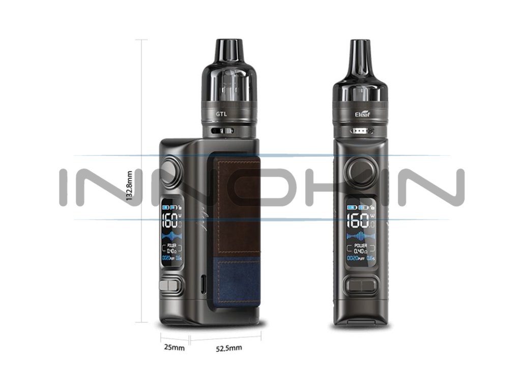 Ve vrchní části najdete závit typu 510 pro kompatibilitu s atomizéry se stejným typem uchycení. Tělo modu je poháněno prvotřídním čipem Avatar pro perfektní výsledky při žhavení. Čip nabídne přehledné uživatelské rozhraní, efektivní náběh žhavení a tři výstupní režimy. Najdete zde režim výkonu s hodnotou až 160 W, režim Smart pro inteligentní detekci připojeného tělíska a nastavení doporučeného výkonu a režim Voltage pro regulaci výstupního napětí. Clearomizér Eleaf GTL Pod Kit nabídne vše potřebné pro všechny typy vaperů. Můžete ho používat na utaženější DL, nebo na vzdušnější MTL potah, zároveň nabídne objem 4,5 ml pro dlouhou výdrž bez potřeby plnění. Ve spodní části si můžete regulovat přísun vzduchu. Jedná se o vynikající soupravu modu a clearomizéru, se kterou se nebudete ani na vteřinu nudit.