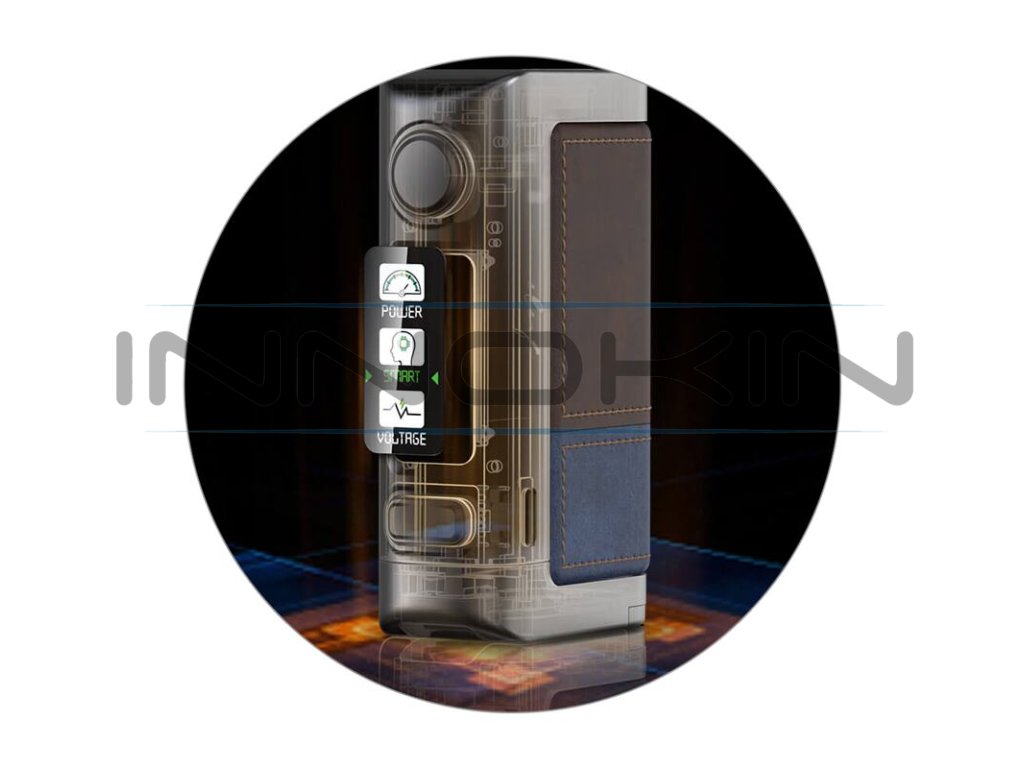 Nezbytnou součástí vybavení elektronického modu je také čip. V tomto případě najdete v modu čip Avatar pro optimální výsledky při vapování. Čip umožňuje výběr jednoho ze tří výstupních režimů. K dispozici je režim výkonu, režim variabilního výstupního napětí a režim Smart, který automaticky rozpozná připojené tělísko a nastaví doporučený a vhodný výkon. Celé ovládání modu je nesmírně intuitivní.