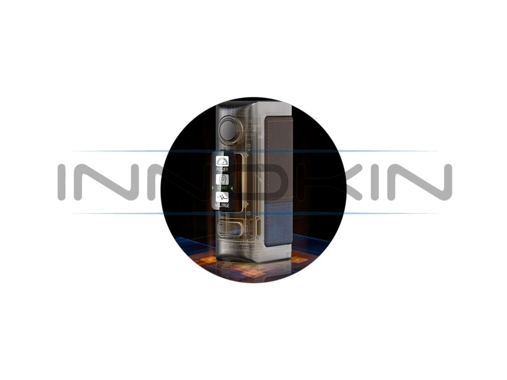 Nezbytnou součástí vybavení elektronického modu je také čip. V tomto případě najdete v modu čip Avatar pro optimální výsledky při vapování. Čip umožňuje výběr jednoho ze tří výstupních režimů. K dispozici je režim výkonu, režim variabilního výstupního napětí a režim Smart, který automaticky rozpozná připojené tělísko a nastaví doporučený a vhodný výkon. Celé ovládání modu je nesmírně intuitivní.