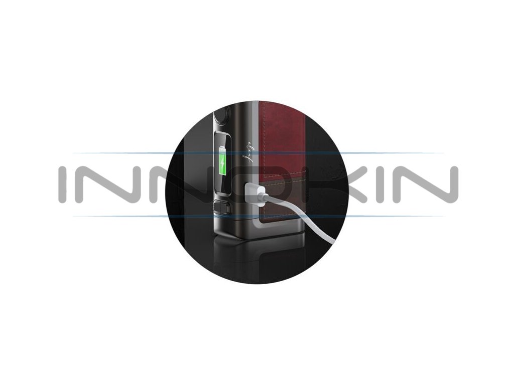 Ve spodní části se nachází slot pro dvě externí baterie typu 18650. Po vložení vlastních baterií můžete začít využívat mod naplno. Nespornou výhodou je také podpora dobíjení baterií přímo v modu. Jednoduše připojíte USB-C kabel k modu a začnete dobíjet pomocí adaptéru, nebo počítače. Díky pohonu na dvě baterie se můžete těšit na bezproblémový chod a rychlý náběh žhavení.