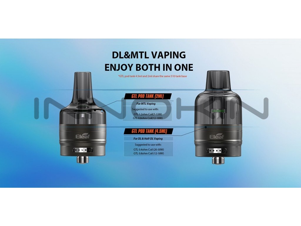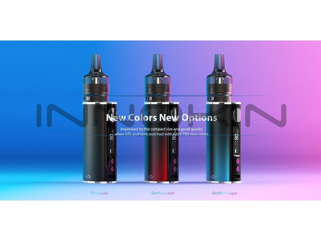 Oblíbený Eleaf iStick T80 ve zcela novém barevném provedení se zcela novým Pod Clearomizérem Eleaf GTL. Vestavěná baterie o kapacitě 3000mAh, rychlé USB-C QC3.0 nabíjení, vysoký výkon až 80W, OLED displej, ochrana proti zkratu, přehřátí, přežhavení, nízkému odporu, 10-ti vteřinová ochrana žhavení. Clearomizér GTL Pod se závitem 510, objem 4,5ml, regulace Airflow, vhodný pro DL vapování, 2x žhavící hlava Eleaf GTL v SETU. Barevné provedení Gunmetal.