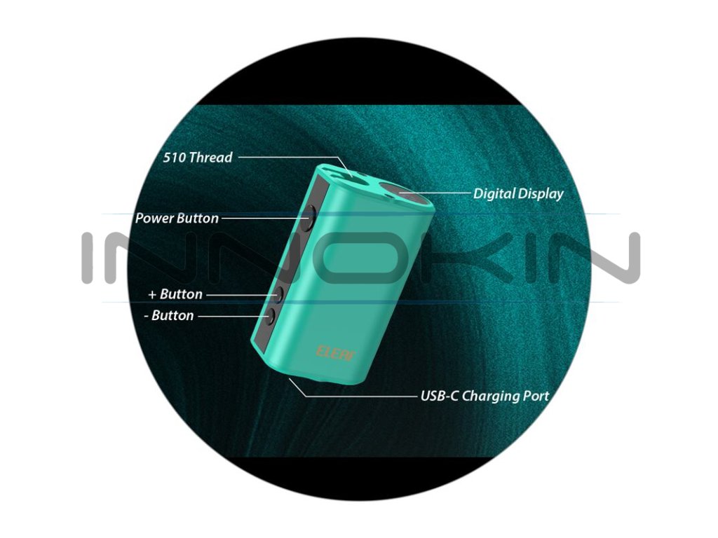 Mod dokáže zaujmout také z hlediska celkového nastavení a ovládání. Ve vrchní části se nachází praktický displej, který zobrazuje aktuální hodnotu výstupního napětí, nebo procentuální stav nabití baterie. Na modu lze regulovat výstupní napětí v rozsahu 2.6 - 5.0 V pomocí regulačních tlačítek na předním ovládacím panelu. Díky intuitivnímu ovládání a nastavení si budou s modem skvěle rozumět také začátečníci. Přímo vedle displeje je ve vrchní části umístěn také tradiční závit typu 510 pro osazení vlastním atomizérem. Výrobce doporučuje osazovat mod atomizéry s průměrem do 16.5 mm, mod se proto hodí zejména pro kompaktnější MTL atomizéry. Skvěle si bude rozumět například s MTL sérií atomizérů Eleaf GS a s tanky, jako je například GSTurbo, nebo GS Drive Tank. Sympatický a kompaktní společník pro každodenní vaping je v nabídce v šesti barevných variantách.