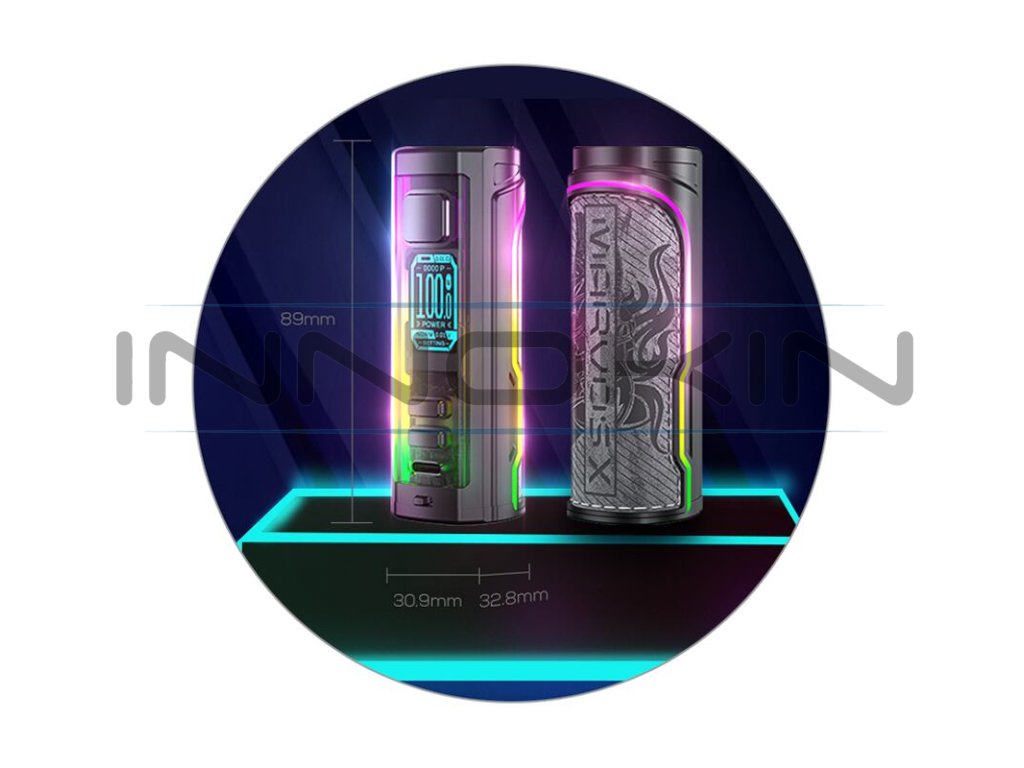 Lze používat standardní režim výkonu, nebo režim SMART pro automatické nastavení výkonu dle odporu atomizéru. K dispozici jsou pak také režimy křivky žhavení (VPC), nebo přímého výstupního napětí z baterie (Bypass). Mod disponuje také přehledným uživatelským rozhraním, na velkém displeji v přední části tak budete mít neustálý přehled o všech nastavených hodnotách. U displeje je navíc možné upravit také barvu podsvícení, na výběr máte hned pět barev. Mezi dalšími zajímavými prvky pak lze jmenovat také LED podsvícení celého modu, které lze upravit a nastavit v nespočtu různorodých variací a stylových animací. Ovládací panel v přední části modu ukrývá také praktický manuální zámek, který lze použít pro bezpečné uzamčení modu například při přenášení. Vrchní část modu je opatřena závitem typu 510, mod je kompatibilní se všemi typy atomizérů se stejným typem závitu, sami si tak můžete zvolit svůj oblíbený atomizér a využít tak funkce modu naplno. Freemax Marvos X Pro Mod je vynikající zařízení, které ocení jak pokročilí uživatelé, tak také začátečníci v oblasti gripů.