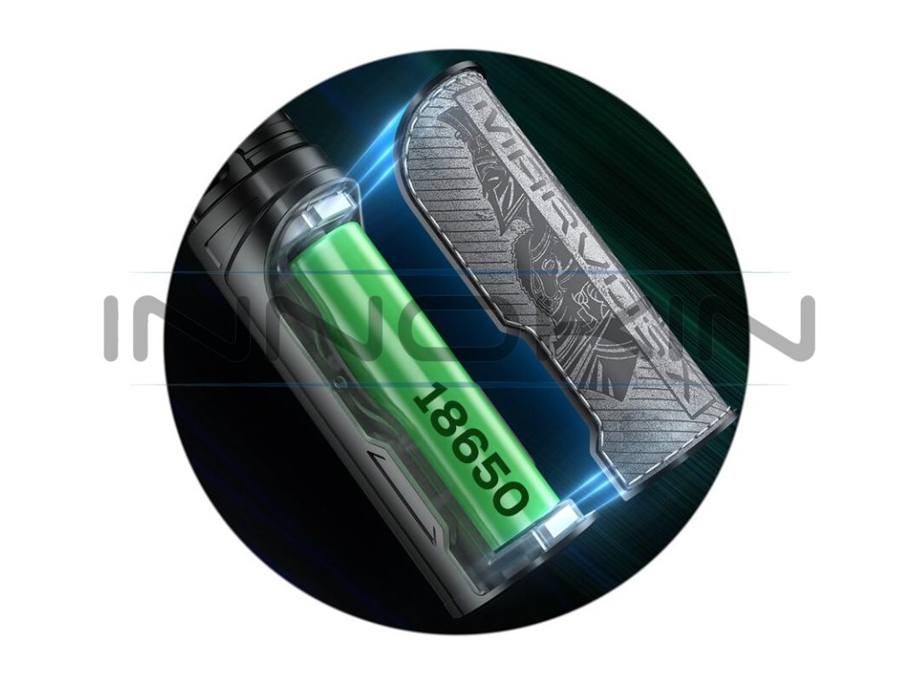 Zadní část modu je tvořena magnetickým krytem, po jehož odklopení odhalíte slot pro vložení vlastní externí baterie. Mod disponuje slotem pro jednu baterii typu 18650, po vložení baterie můžete začít využívat všechny jeho funkce naplno. Díky pohonu na jednu baterii si mod poradí s ohromujícím výstupním výkonem, který dosahuje až 100 W. Baterii můžete navíc pohodlně dobíjet přímo v modu díky portu USB-C přímo na těle zařízení.