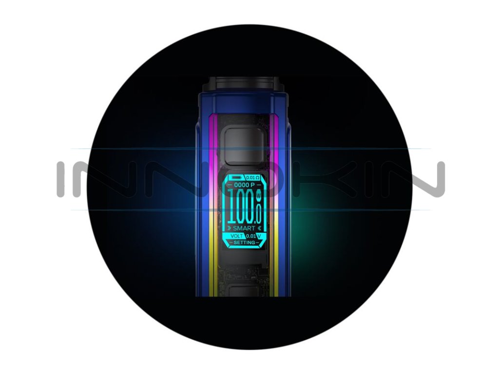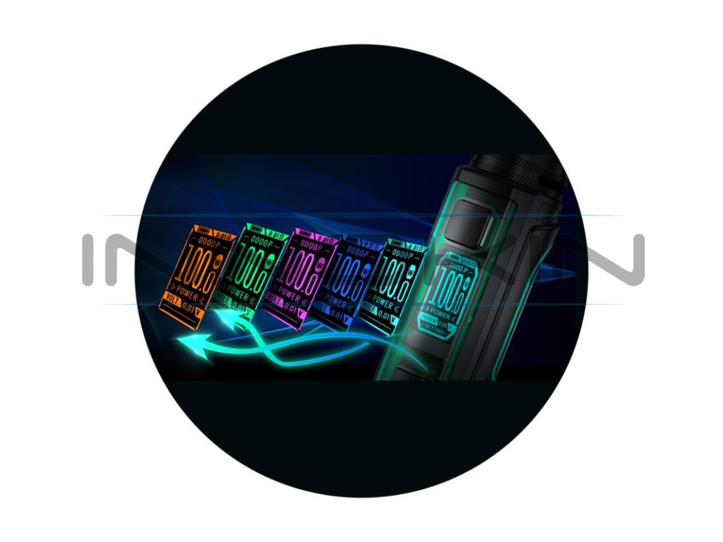 V přední části modu Marvos X Pro na vás čeká obrovský barevný displej s přehledným uživatelským rozhraním. Díky čipu FM CHIP 2.0 v těle je celkové nastavení všech parametrů a hodnot nesmírně intuitivní, rychlé a snadné. Výhodou je také možnost přepnutí barevného schématu displeje, můžete si tak vyladit celkový vzhled rozhraní přesně podle svých představ, na výběr máte hned pět barevných schémat.