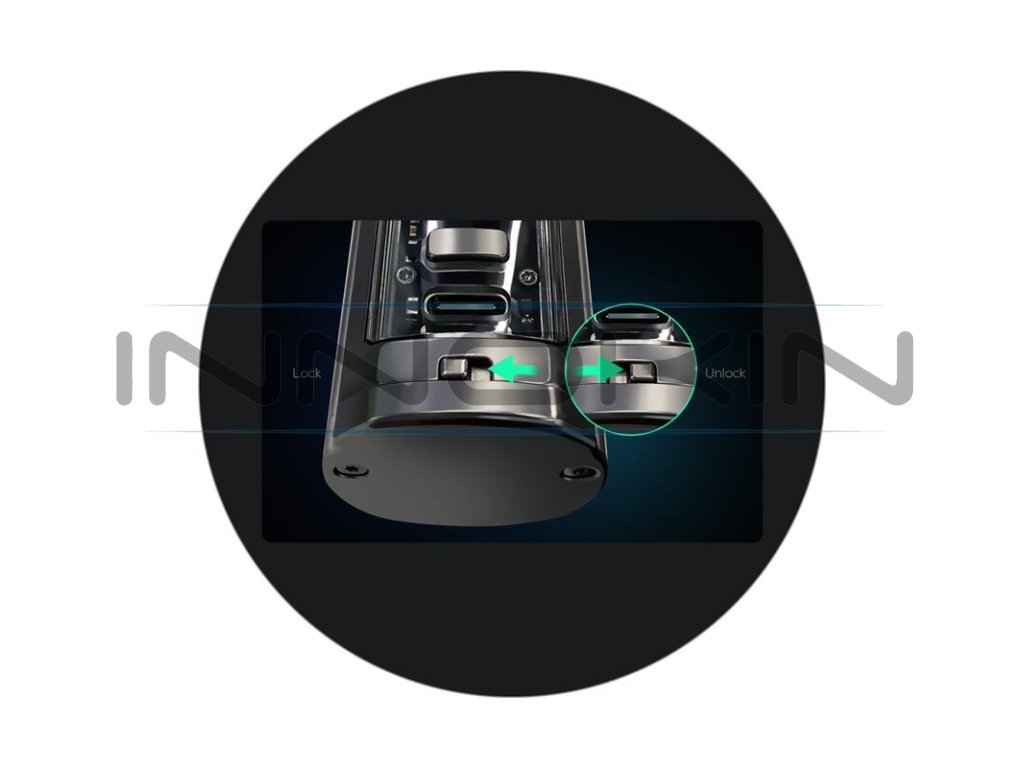 Ve spodní části modu se nachází praktický manuální zámek, který slouží pro odemčení, nebo uzamčení celého modu. V případě uzamčení zamkne ovládací regulační tlačítka, ale také spínací tlačítko. Mod tak nezačne žhavit sám od sebe, ani nepřenastaví navolené parametry při nechtěném sepnutí tlačítek při přenášení v kapse, nebo cestovním zavazadle. Jedná se o vynikající pomůcku při každodenním využití.