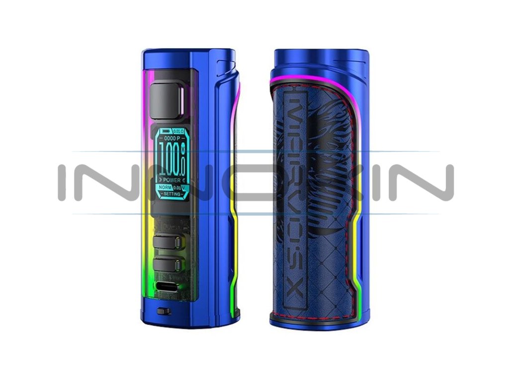 Lze používat standardní režim výkonu, nebo režim SMART pro automatické nastavení výkonu dle odporu atomizéru. K dispozici jsou pak také režimy křivky žhavení (VPC), nebo přímého výstupního napětí z baterie (Bypass). Mod disponuje také přehledným uživatelským rozhraním, na velkém displeji v přední části tak budete mít neustálý přehled o všech nastavených hodnotách. U displeje je navíc možné upravit také barvu podsvícení, na výběr máte hned pět barev. Mezi dalšími zajímavými prvky pak lze jmenovat také LED podsvícení celého modu, které lze upravit a nastavit v nespočtu různorodých variací a stylových animací. Ovládací panel v přední části modu ukrývá také praktický manuální zámek, který lze použít pro bezpečné uzamčení modu například při přenášení. Vrchní část modu je opatřena závitem typu 510, mod je kompatibilní se všemi typy atomizérů se stejným typem závitu, sami si tak můžete zvolit svůj oblíbený atomizér a využít tak funkce modu naplno. Freemax Marvos X Pro Mod je vynikající zařízení, které ocení jak pokročilí uživatelé, tak také začátečníci v oblasti gripů.