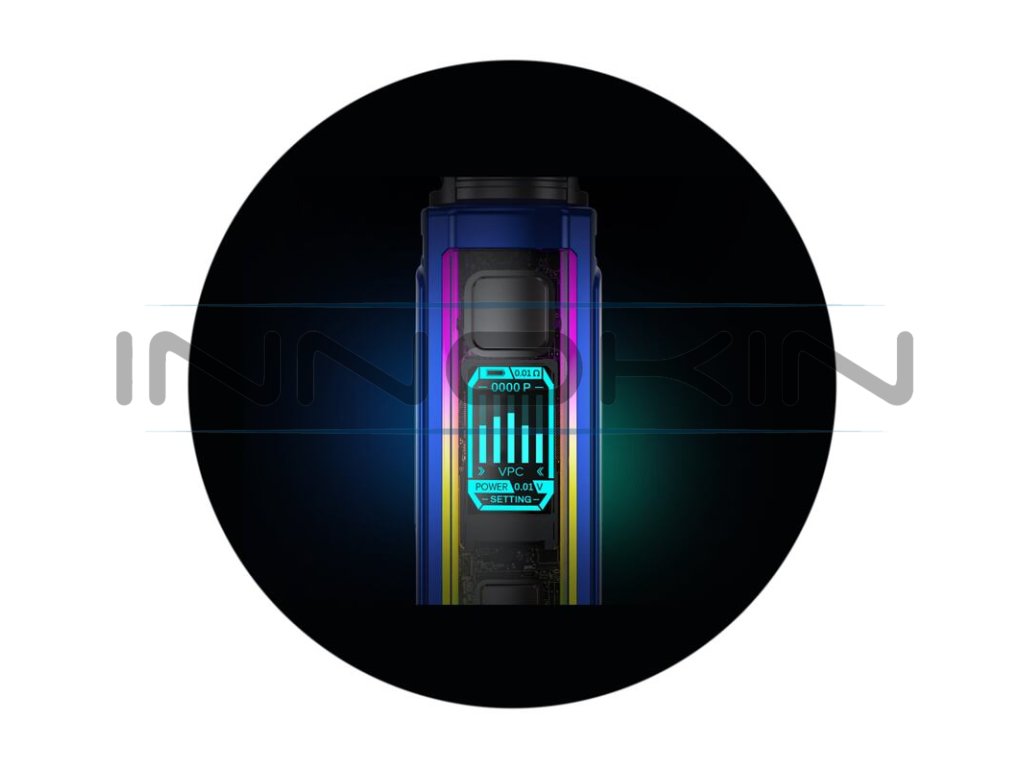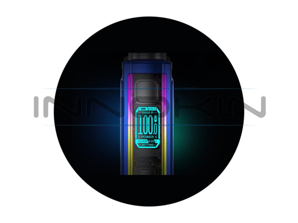V přední části modu Marvos X Pro na vás čeká obrovský barevný displej s přehledným uživatelským rozhraním. Díky čipu FM CHIP 2.0 v těle je celkové nastavení všech parametrů a hodnot nesmírně intuitivní, rychlé a snadné. Výhodou je také možnost přepnutí barevného schématu displeje, můžete si tak vyladit celkový vzhled rozhraní přesně podle svých představ, na výběr máte hned pět barevných schémat.