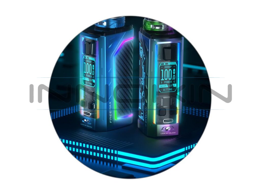 Luxusně zpracovaný a futuristický grip s ohromujícím výstupním výkonem. Tak by se dal ve zkratce definovat překrásný mod Freemax Maxus 2. Tradiční box mod Maxus 2 láká také na slot pro vlastní externí baterie, pokročilou nabídku výstupních režimů a rozsáhlé možnosti v nastavení podsvícení celého modu. Díky svému ergonomickému zpracování a kvalitně zpracované kovové konstrukci se perfektně drží v ruce. Jeho rozměry činí jen 51.9 x 31 x 89.5 mm. Tělo modu potom ukrývá slot pro vložení dvou externích baterií typu 18650, díky pohonu na dvě baterie zvládne mod pracovat s obrovským výstupním výkonem a zvládne také hladký chod s rychlým náběhem žhavení. Baterie budete moci pohodlně dobíjet přímo uvnitř modu, na jeho těle se totiž nachází USB-C port s podporou nabíjení s parametry 5V / 2A. Mimo slot pro baterii ukrývá tělo modu vysoce kvalitní elektronický čip FM CHIP 3.0. Díky perfektní elektronice se můžete těšit na snadnou uživatelskou obsluhu a pohodlné nastavení všech parametrů.