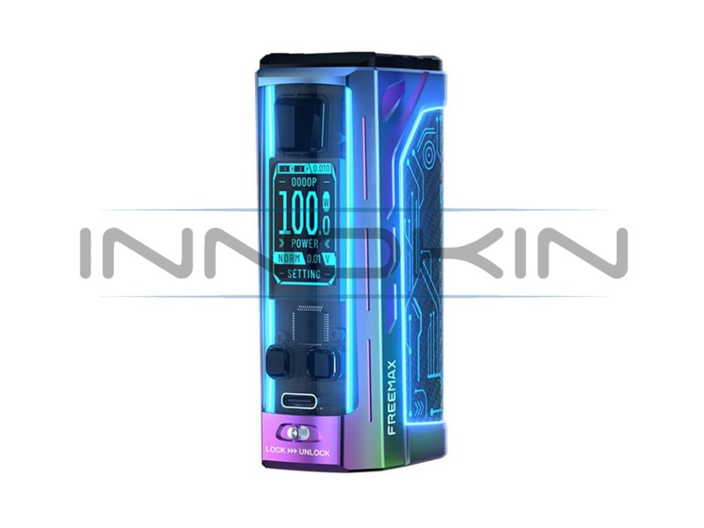 Luxusně zpracovaný a futuristický grip s ohromujícím výstupním výkonem. Tak by se dal ve zkratce definovat překrásný mod Freemax Maxus 2. Tradiční box mod Maxus 2 láká také na slot pro vlastní externí baterie, pokročilou nabídku výstupních režimů a rozsáhlé možnosti v nastavení podsvícení celého modu. Díky svému ergonomickému zpracování a kvalitně zpracované kovové konstrukci se perfektně drží v ruce. Jeho rozměry činí jen 51.9 x 31 x 89.5 mm. Tělo modu potom ukrývá slot pro vložení dvou externích baterií typu 18650, díky pohonu na dvě baterie zvládne mod pracovat s obrovským výstupním výkonem a zvládne také hladký chod s rychlým náběhem žhavení. Baterie budete moci pohodlně dobíjet přímo uvnitř modu, na jeho těle se totiž nachází USB-C port s podporou nabíjení s parametry 5V / 2A. Mimo slot pro baterii ukrývá tělo modu vysoce kvalitní elektronický čip FM CHIP 3.0. Díky perfektní elektronice se můžete těšit na snadnou uživatelskou obsluhu a pohodlné nastavení všech parametrů.