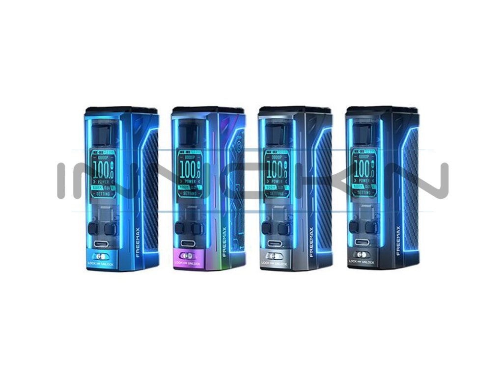 Luxusně zpracovaný a futuristický grip s ohromujícím výstupním výkonem. Tak by se dal ve zkratce definovat překrásný mod Freemax Maxus 2. Tradiční box mod Maxus 2 láká také na slot pro vlastní externí baterie, pokročilou nabídku výstupních režimů a rozsáhlé možnosti v nastavení podsvícení celého modu. Díky svému ergonomickému zpracování a kvalitně zpracované kovové konstrukci se perfektně drží v ruce. Jeho rozměry činí jen 51.9 x 31 x 89.5 mm. Tělo modu potom ukrývá slot pro vložení dvou externích baterií typu 18650, díky pohonu na dvě baterie zvládne mod pracovat s obrovským výstupním výkonem a zvládne také hladký chod s rychlým náběhem žhavení. Baterie budete moci pohodlně dobíjet přímo uvnitř modu, na jeho těle se totiž nachází USB-C port s podporou nabíjení s parametry 5V / 2A. Mimo slot pro baterii ukrývá tělo modu vysoce kvalitní elektronický čip FM CHIP 3.0. Díky perfektní elektronice se můžete těšit na snadnou uživatelskou obsluhu a pohodlné nastavení všech parametrů.