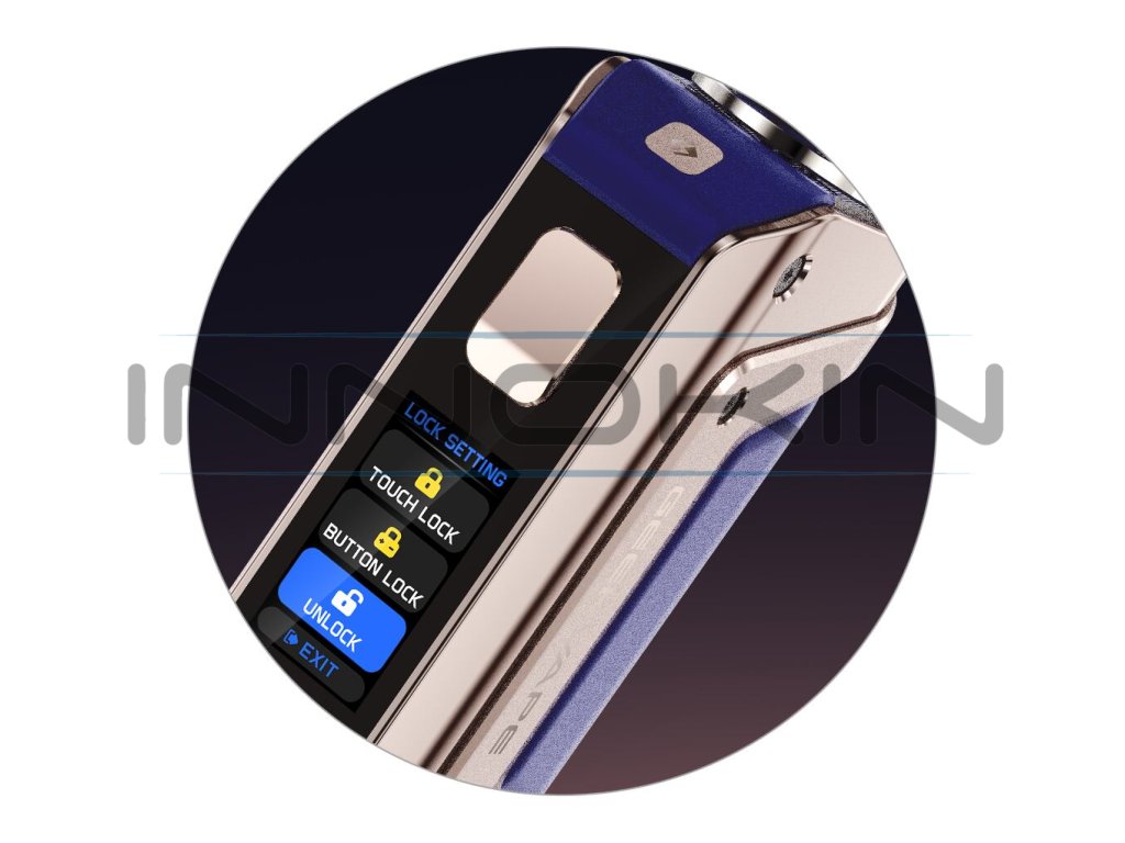 Aegis Legend 3 se pyšní inovativní technologií inteligentního zámku. Ten se dá aktivovat v nastavení. Na výběr máte režimy TOUCH, BUTTON a UNLOCK. V režimu Unlock můžete zařízení ponechávat odemčené. V režimu BUTTON se aktivuje funkce zámku pomocí spínacího tlačítka. Nejzajímavějším režimem je potom inteligentní TOUCH, zadní část modu je opatřena elektronickým systémem rozpoznání přiložené dlaně, jakmile mod sevřete v dlani a stisknete spínací tlačítko, zařízení se odemkne a potah se aktivuje.