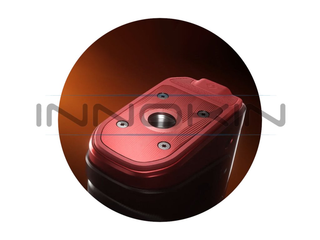 Horní velká platforma zdobená texturovaným designem je osazena vnitřním závitem typu 510. Tento typ závitu zajišťuje snadnou a bezproblémovou kompatibilitu modu s drtivou většinou dnešních atomizérů na tovární žhavící hlavy. Pokud však toužíte po dokonalém přizpůsobení, můžete sáhnout po některém z DIY atomizérů, které umožňují připojení vlastní spirálky.