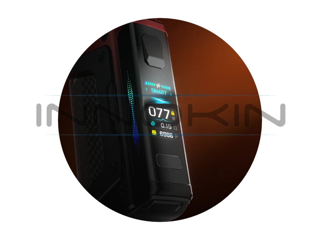 Díky slotu na dvě baterie 18650 disponuje mod ohromujícím výkonem až 200 W s plynulou regulací. Řadí se tak mezi nejvýkonnější mody na trhu a uspokojí i ty nejnáročnější vyznavače DL vapování a cloud chasingu. Výkon si můžete pohodlně regulovat pomocí tlačítek umístěných pod displejem. Výhodou je také nabíjení baterií přímo v modu prostřednictvím USB-C portu.