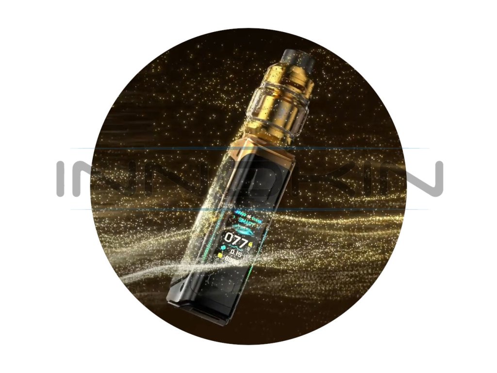 Velký barevný displej s úhlopříčkou 1,08" a technologií TFT zobrazuje v reálném čase veškeré důležité informace o zvoleném režimu, výkonu, stavu baterie a naměřeném odporu. Nechybí ani počítadlo potahů. Po stranách je displej doplněný o ambientní LED osvětlení. V rámci individualizace si můžete vybírat z pěti světelných efektů.