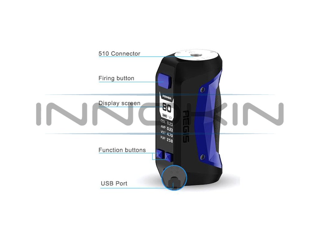 O bezpečný provoz a rychlý náběh žhavení se postará vestavěný čip AS. Tento pokročilý čip umožňuje skutečně extrémně rychlý náběh žhavení. Ten se zastavil na 9 ms. Nechybí bezpečný provoz díky řadě ochran, během nabíjení je vaše baterie chráněna proti přebití a podbití, během používání jste zase chráněni proti zkratu, nebo příliš dlouhému žhavení. Nechybí ani kontrola e-liquidu u spirálky v TC režimu. Co se týče režimů, na výběr jich je celá řada. Nechybí klasický režim výkonu, nebo teplotní režimy pro niklové, titanové a nerezové spirálky. Pokročilejší uživatelé si mohou zvolit režimy VPC, TCR a Bypass. Všechny parametry a režimy si nastavujete pohodlně pomocí velkého displeje v přední části gripu. Ikony jsou krásně čitelné a skvěle se nastavuje i na slunci. GeekVape Aegis Mini je po všech stránkách dokonalý mod, který si zasluhuje vaši pozornost.