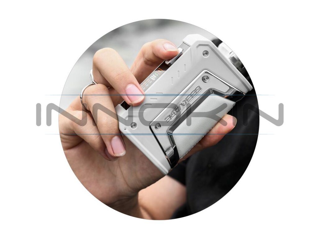 V těle modu se ukrývá slot pro vložení dvou externích baterií. Postačí jen odklopit víčko ve spodní části a vložit své vlastní baterie typu 21700, nebo 18650 s přiloženou redukcí. Díky pohonu na dvě baterie si mod poradí s ohromujícím výstupním výkonem a dodá vždy perfektní výsledky při vapování. Baterie si budete moci navíc pohodlně dobíjet přímo v modu připojením dobíjecího kabelu typu USB-C.