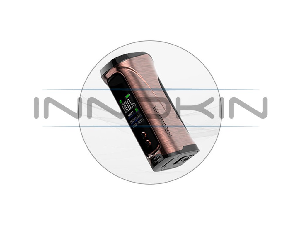 Výrobce Innokin přináší na trh vynikající celkovový grip s označením Kroma-R Mod. Ten osloví širokou škálu vaperů díky řadě funkcí a stylovému designovému zpracování. Celé tělo modu je vyrobeno z kvalitní zinkové slitiny. Mod je k dostání hned ve čtyřech barvách, z nichž si zaručeně vybere každý. Bytelná konstrukce těla modu nabídne rozměry 85 x 40 x 26 mm a díky ergonomickému zaoblení zadní části skvěle padne do každé ruky a pohodlně se používá. Uvnitř těla modu se nachází slot pro externí baterii typu 18650, která se postará o bezproblémový chod a vysoký výstupní výkon. Baterie 18650 není součástí základního balení a je nutné dokoupit ji samostatně. Tuto baterii budete moci dobíjet přímo v modu díky micro USB portu na předním panelu.