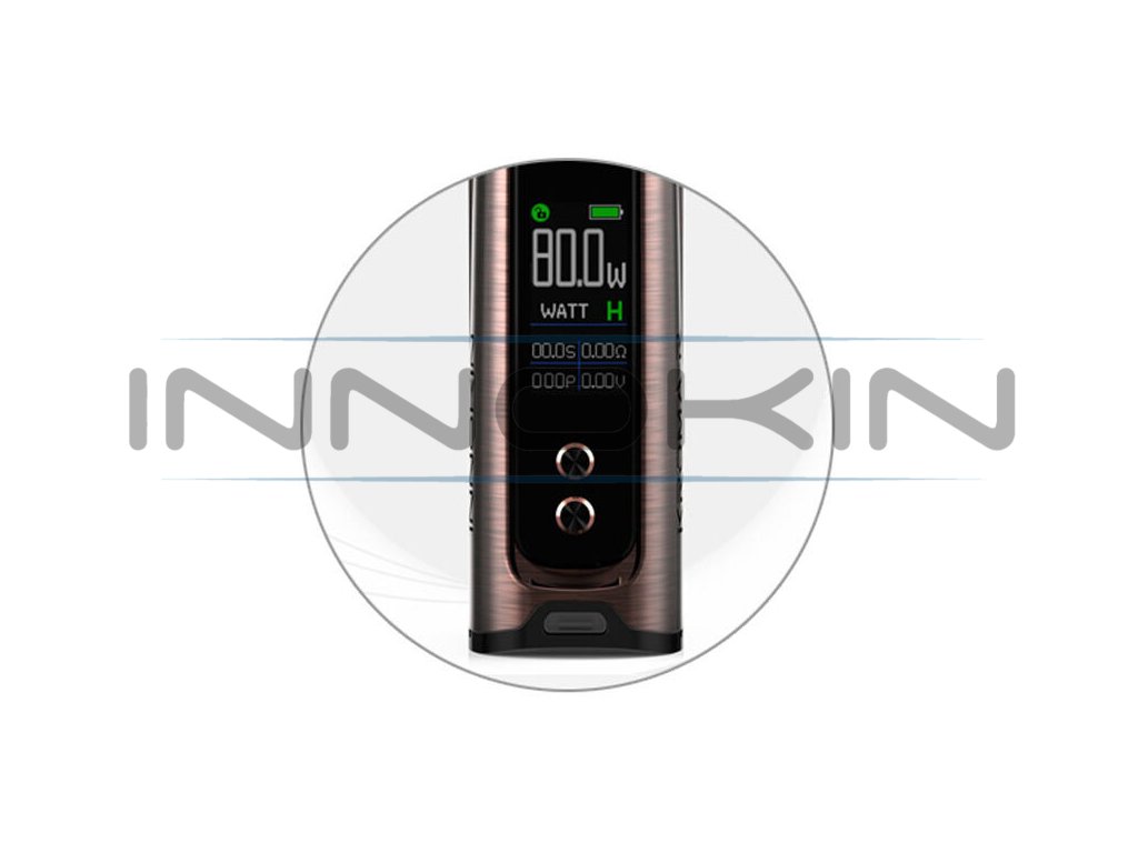Mod Innokin Kroma-R osloví jak příznivce MTL, tak také DL. Díky svému čipu ho budete moci používat v rozmezí 6 - 80 W. K dispozici jsou také chuťové profily předžhavení, nebo třeba režim variabilního výstupního napětí. Všechny parametry si pohodlně nastavíte na předním displeji pomocí dvou regulačních tlačítek.