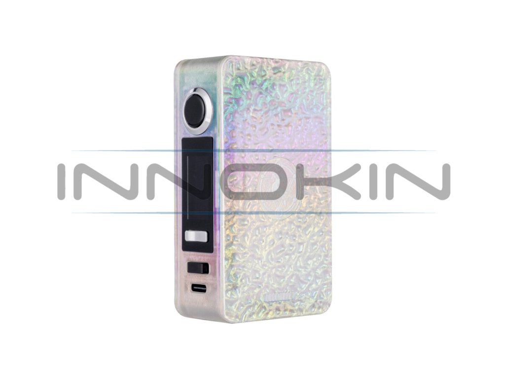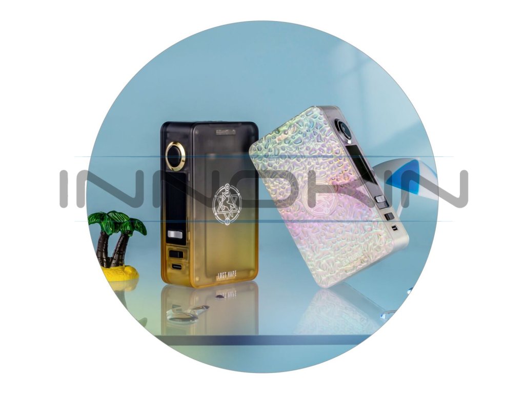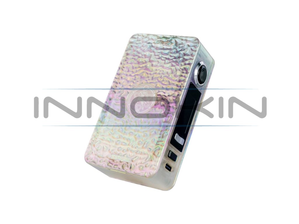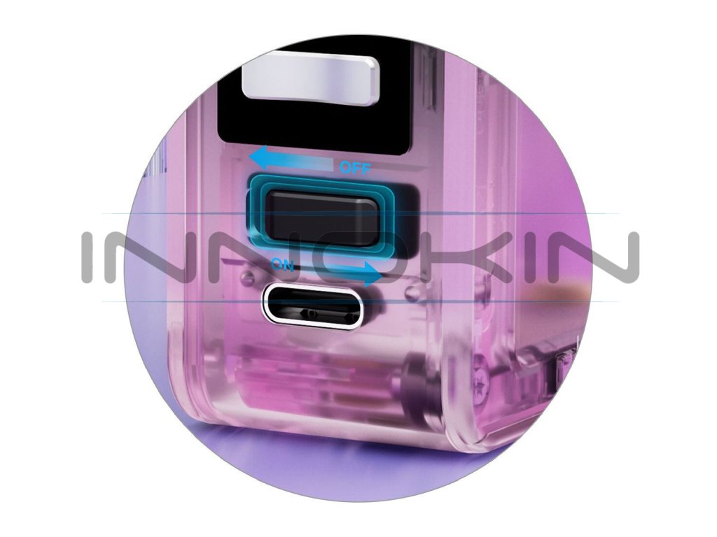 Boční panel modu ukrývá slot pro vložení dvou externích baterií typu 18650. Díky pohonu na dvě baterie si dokáže mod poradit s ohromujícím výkonem a zároveň dodat vždy skvělé a co nejoptimálnější výsledky při vapování. Samozřejmostí je také praktická podpora nabíjení baterií přímo v modu. Tělo modu je vybaveno portem USB-C a mod podporuje nabíjení 2A.